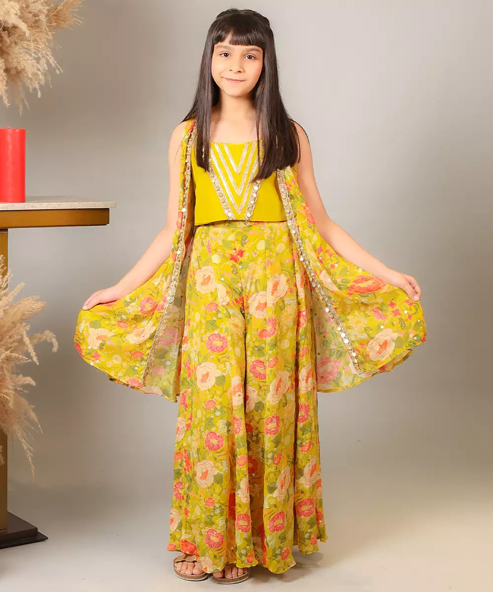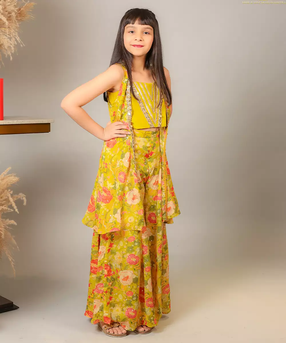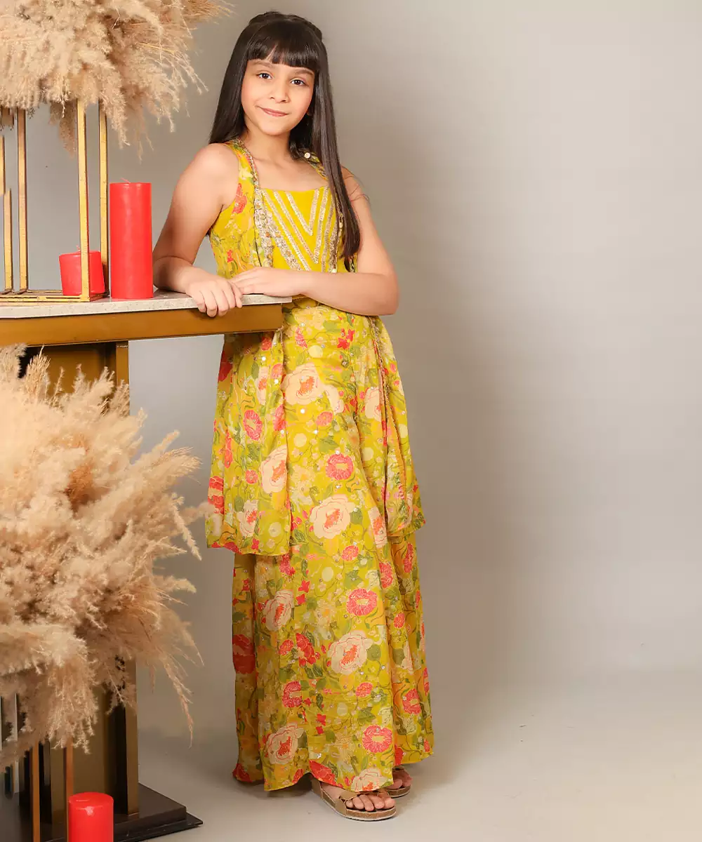 This Yellow Printed Crepe Co Ord Set Radiates Cheerful Elegance With A Modern Touch. Crafted From Lightweight, Flowy Crepe Fabric, It Features Vibrant Prints That Add Playful Charm. Perfect For Daytime Outings And Festive Gatherings, It Offers Comfort, Effortless Style, And A Flattering Contemporary Silhouette.