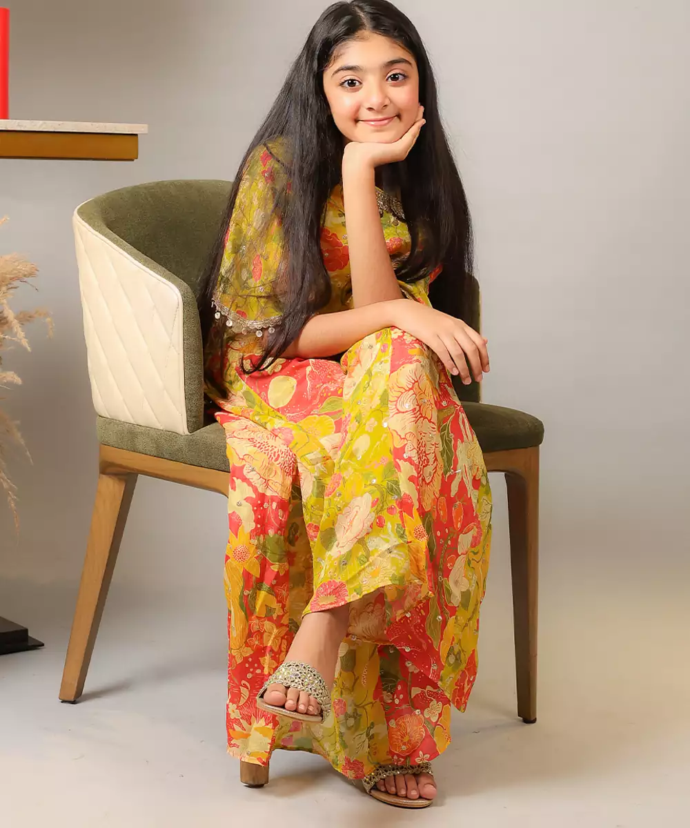This Yellow Printed Crepe Co Ord Set Brings Cheerful Elegance With A Contemporary Twist. Made From Lightweight, Flowy Crepe Fabric, It Features Vibrant Prints That Add Playful Charm. Perfect For Daytime Events And Festive Outings, It Offers Comfort, Effortless Style, And A Flattering Modern Silhouette.