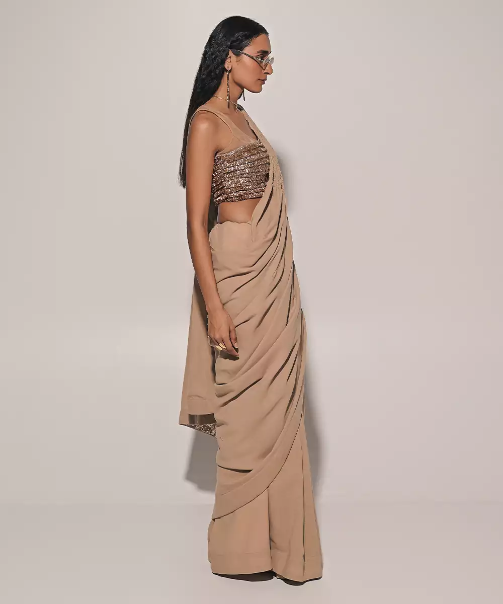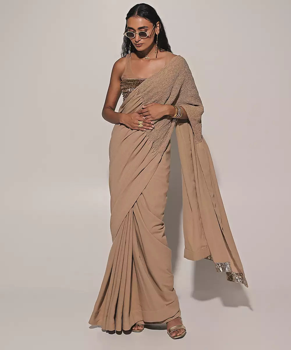 "Exude Timeless Grace With This Beige Embroidered Linen Saree, Crafted From Soft, Breathable Fabric With A Natural Texture. Delicate Embroidery Enhances Its Elegant Appeal, While The Fluid Drape Ensures Effortless Sophistication. Perfect For Festive Occasions, Casual Gatherings, And Chic Daytime Or Evening Wear.