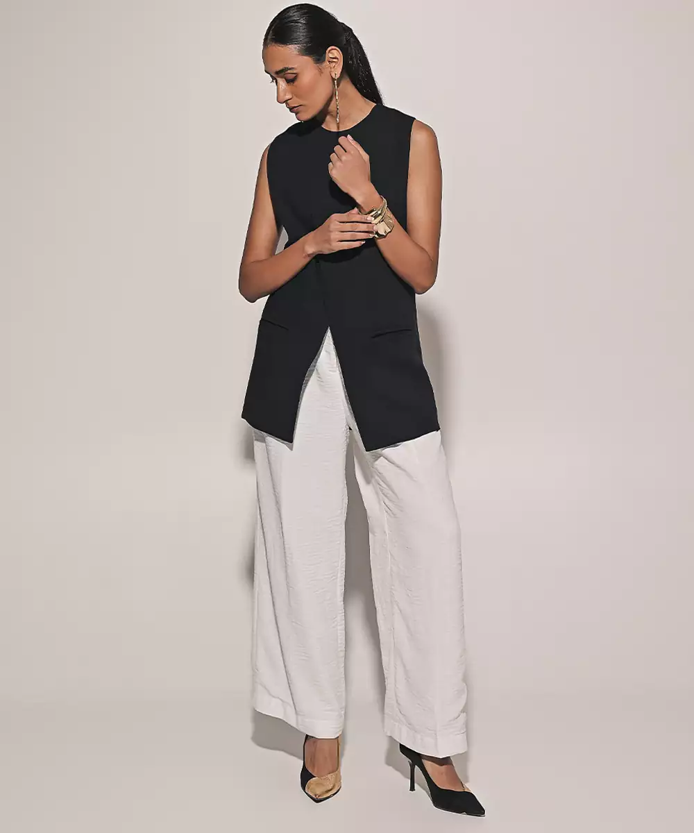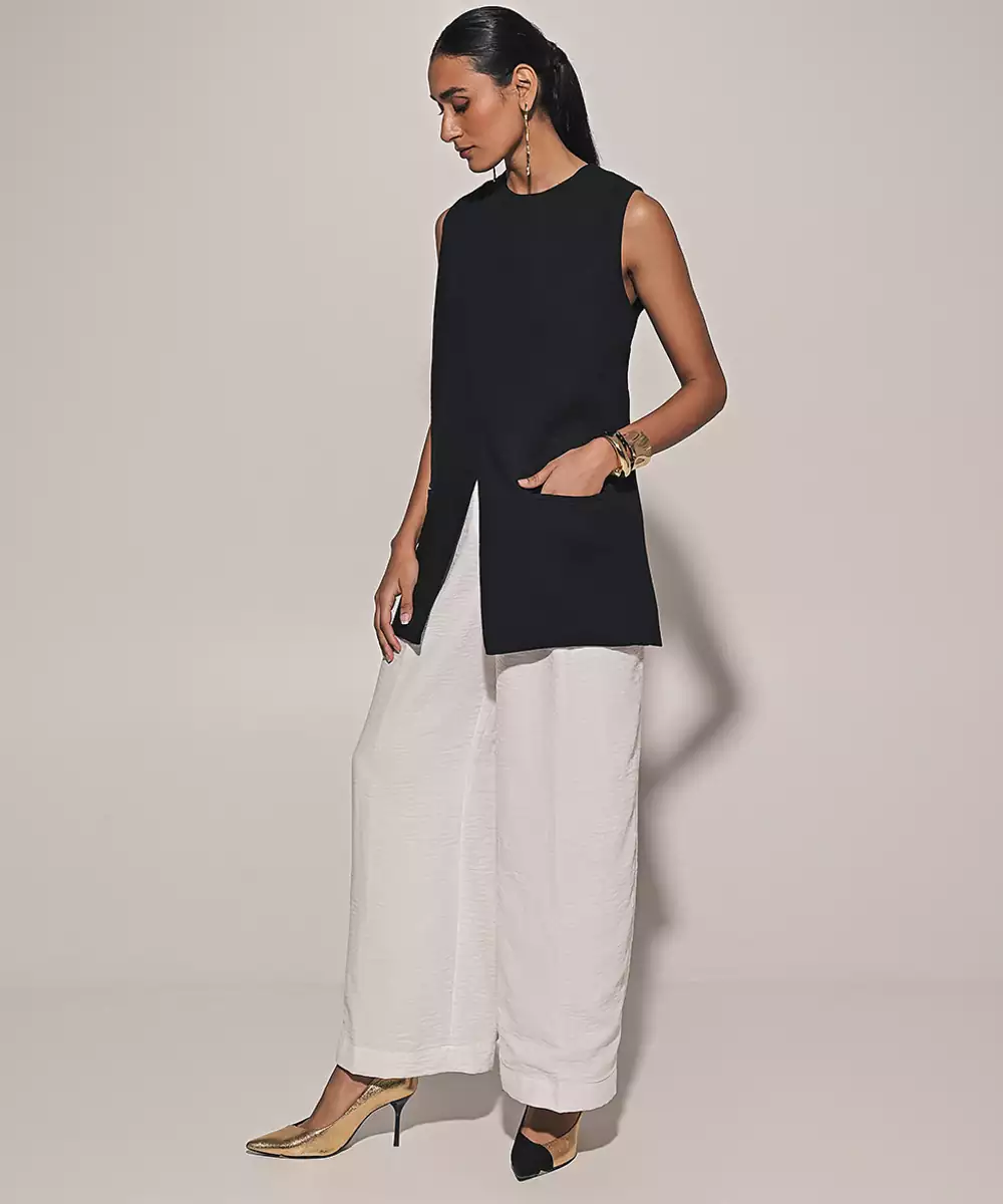 Step Into Modern Elegance With This Black Linen Co Ord Set, Crafted From Breathable Fabric With A Soft Natural Texture. The Relaxed Yet Tailored Silhouette Offers All Day Comfort, While The Classic Black Hue Adds Timeless Appeal. Perfect For Casual Outings, Festive Brunches, And Chic Daytime Occasions.