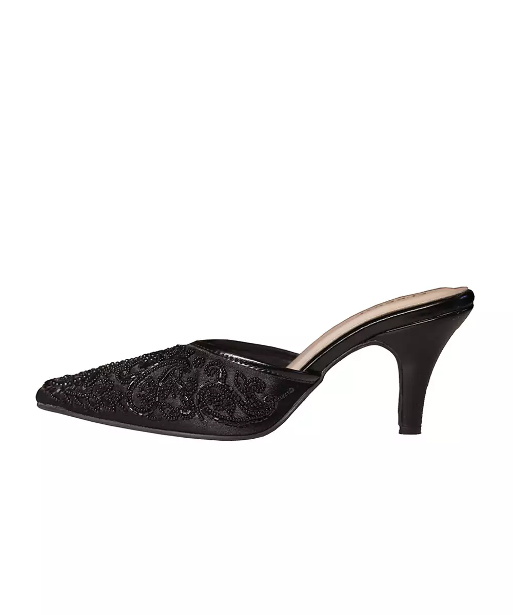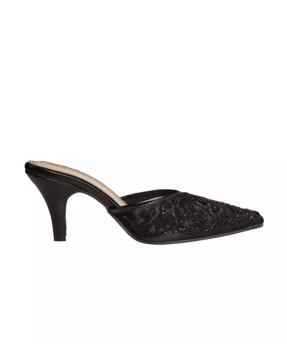 Black Beads Embroidered Synthetic Heels