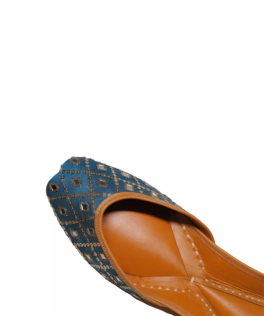 Blue Embroidered Leather Juttis