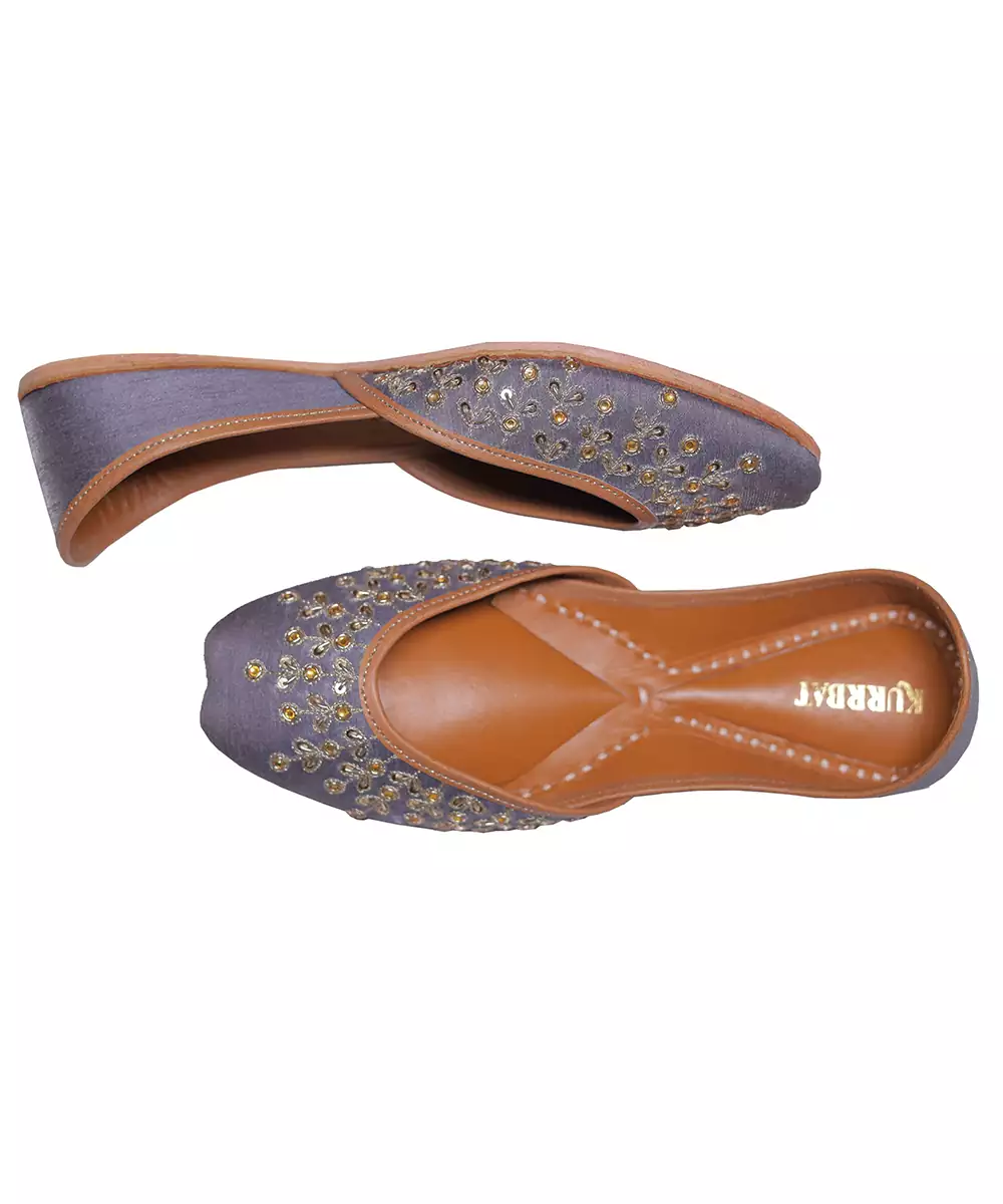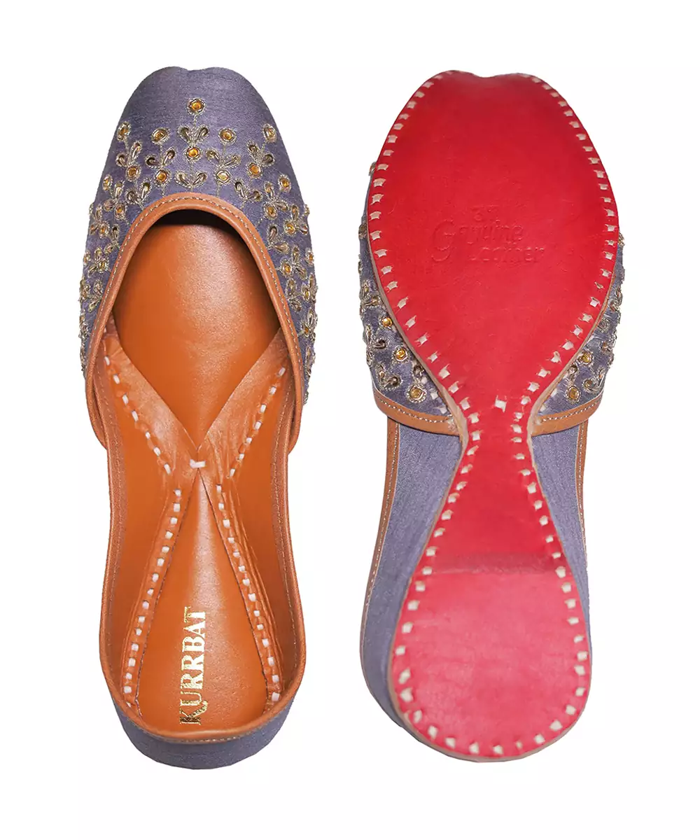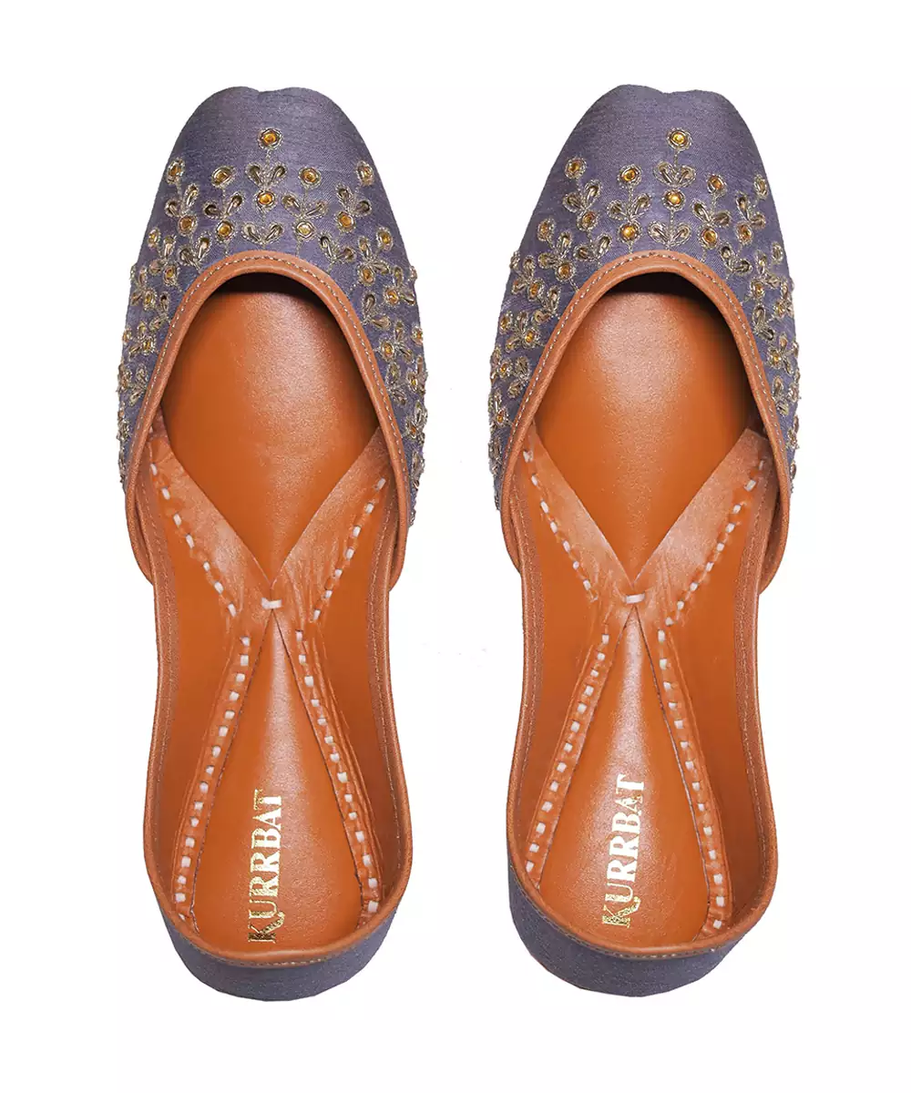 These Grey Embroidered Leather Juttis Combine Subtle Color With Elegant Detailing. Crafted From Soft Leather, They Provide Comfort While The Intricate Embroidery Adds A Refined Festive Touch. Perfect For Celebrations, Cultural Events, And Stylish Traditional Looks.