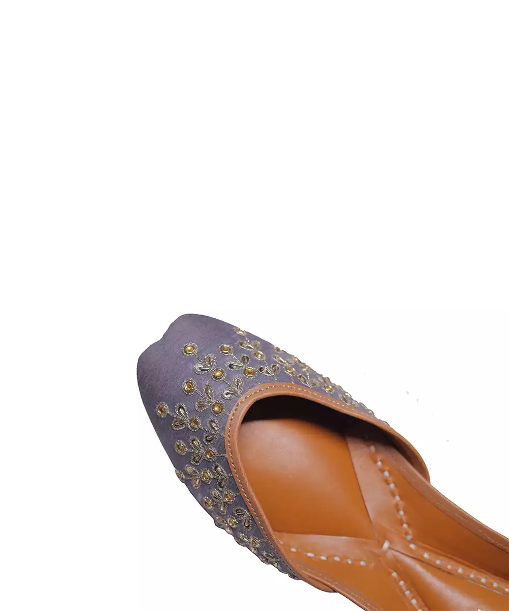 Grey Embroidered Leather Juttis