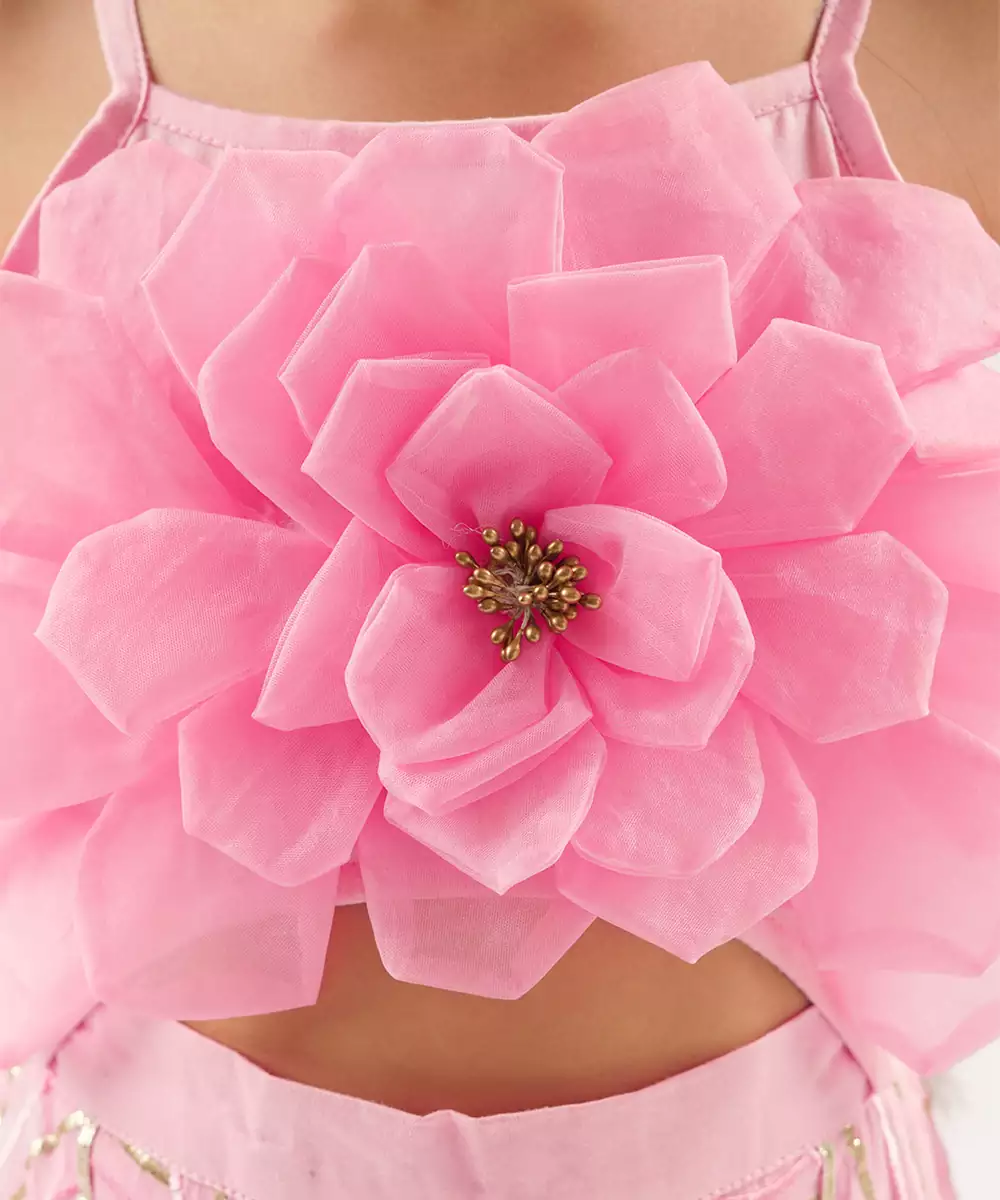 Jumpsuit Featuring A 3 D Flower Yoke With All Over Gota Embroidery On The Bottom.