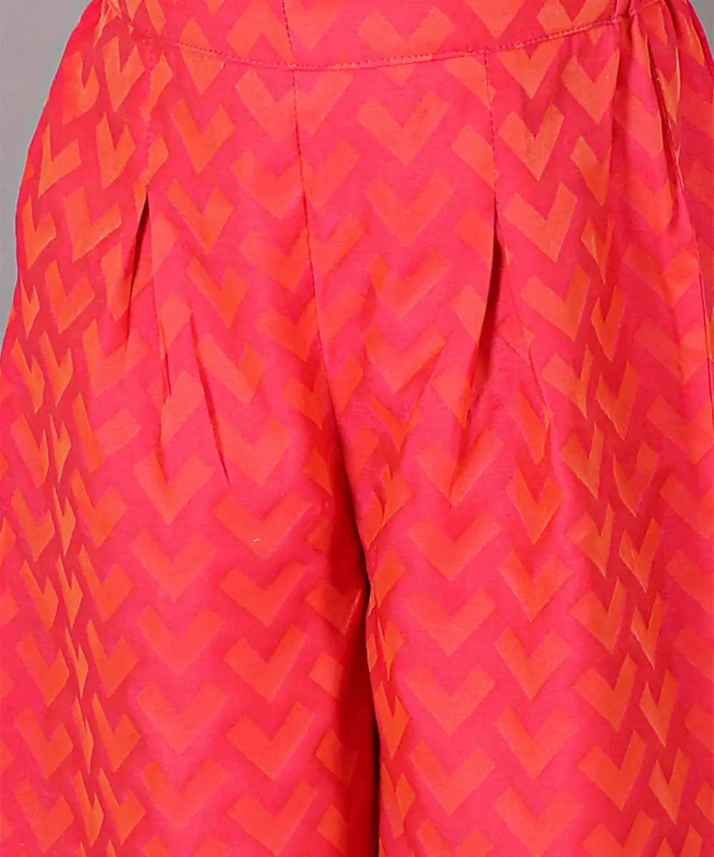 Jaquard Pant With Box Pleats Is Paired With Matching Sleeveless Top Featuring Shoulder Round Neckline, Back Button Closure And Is Accented With Gota Lace.