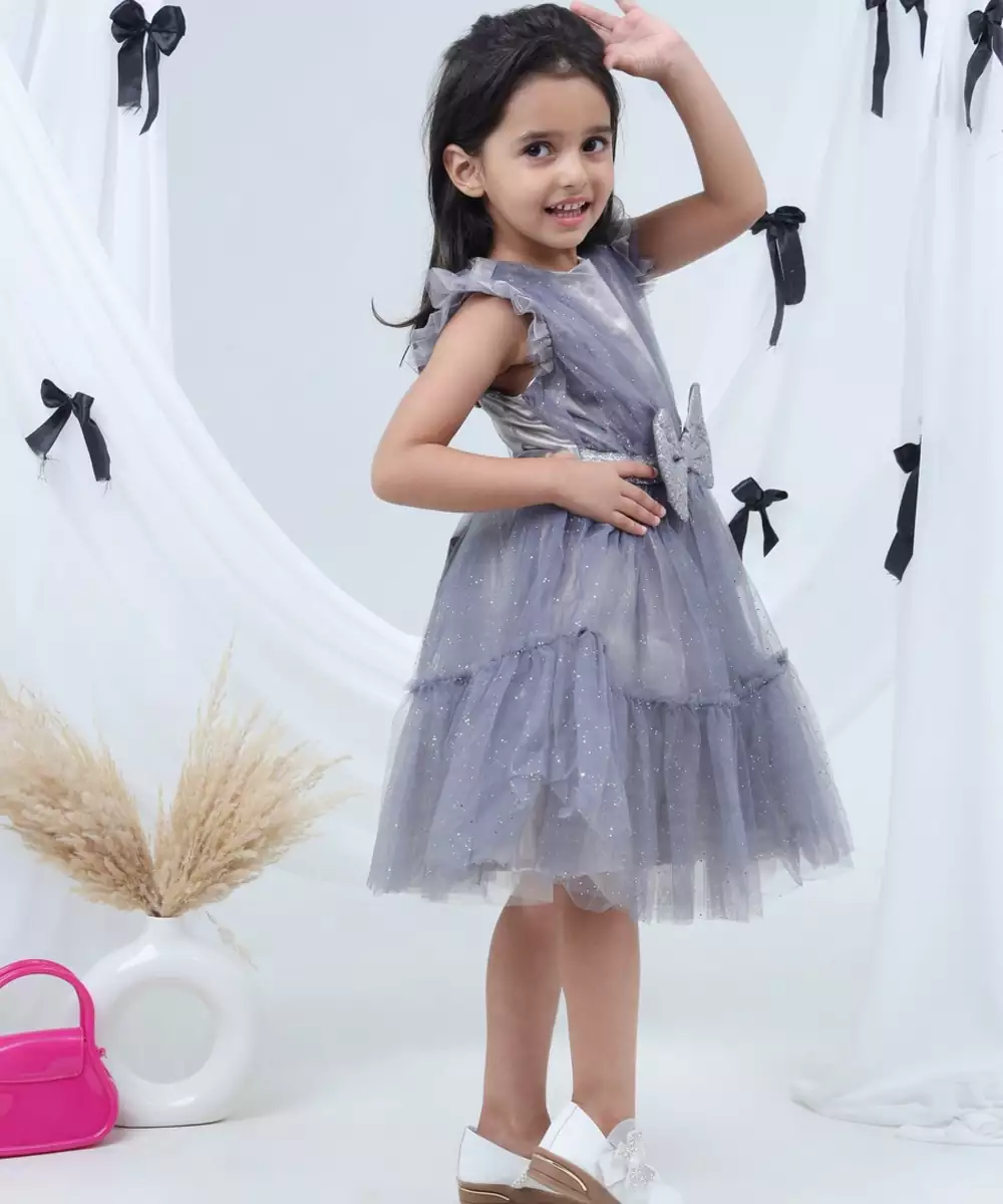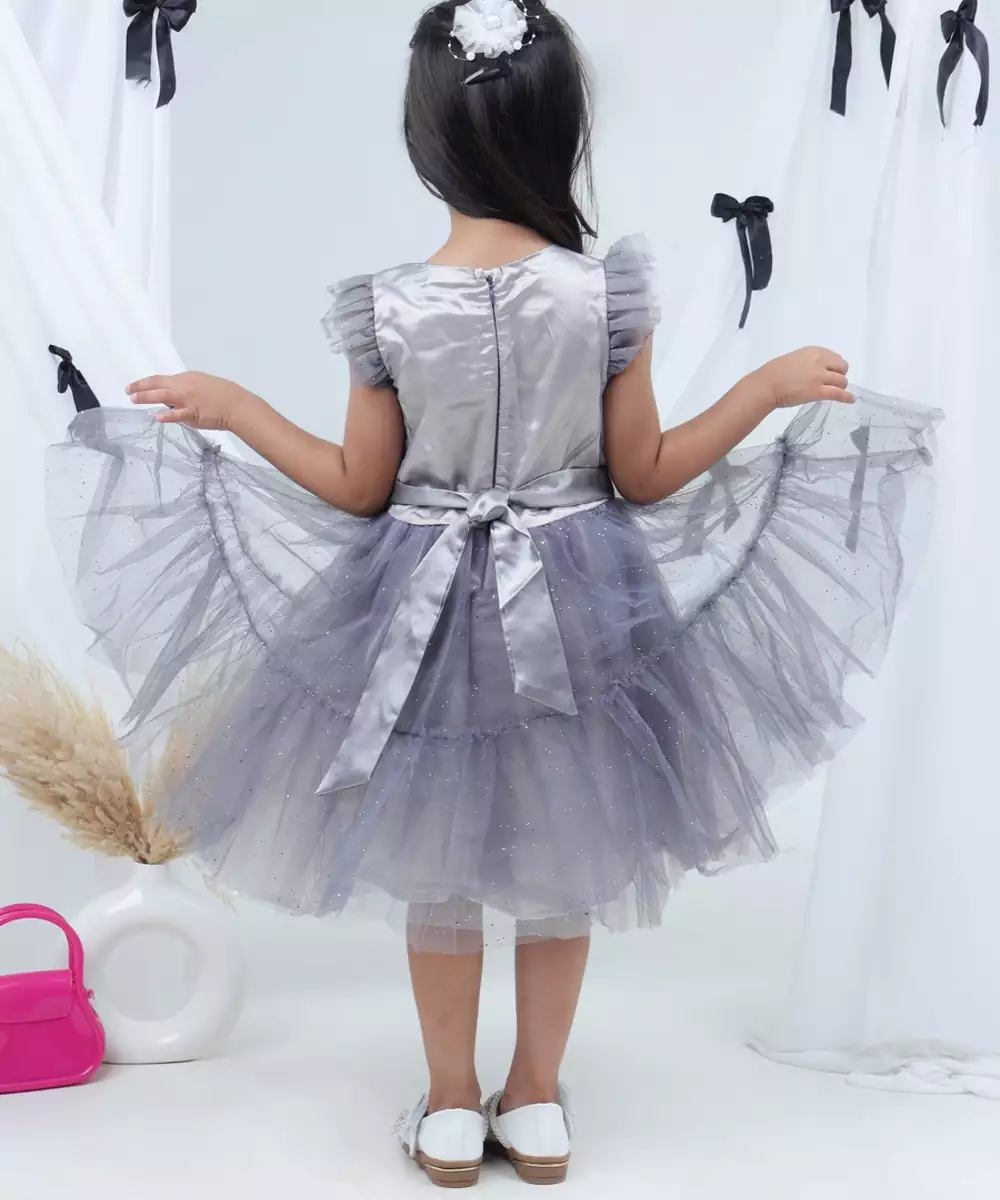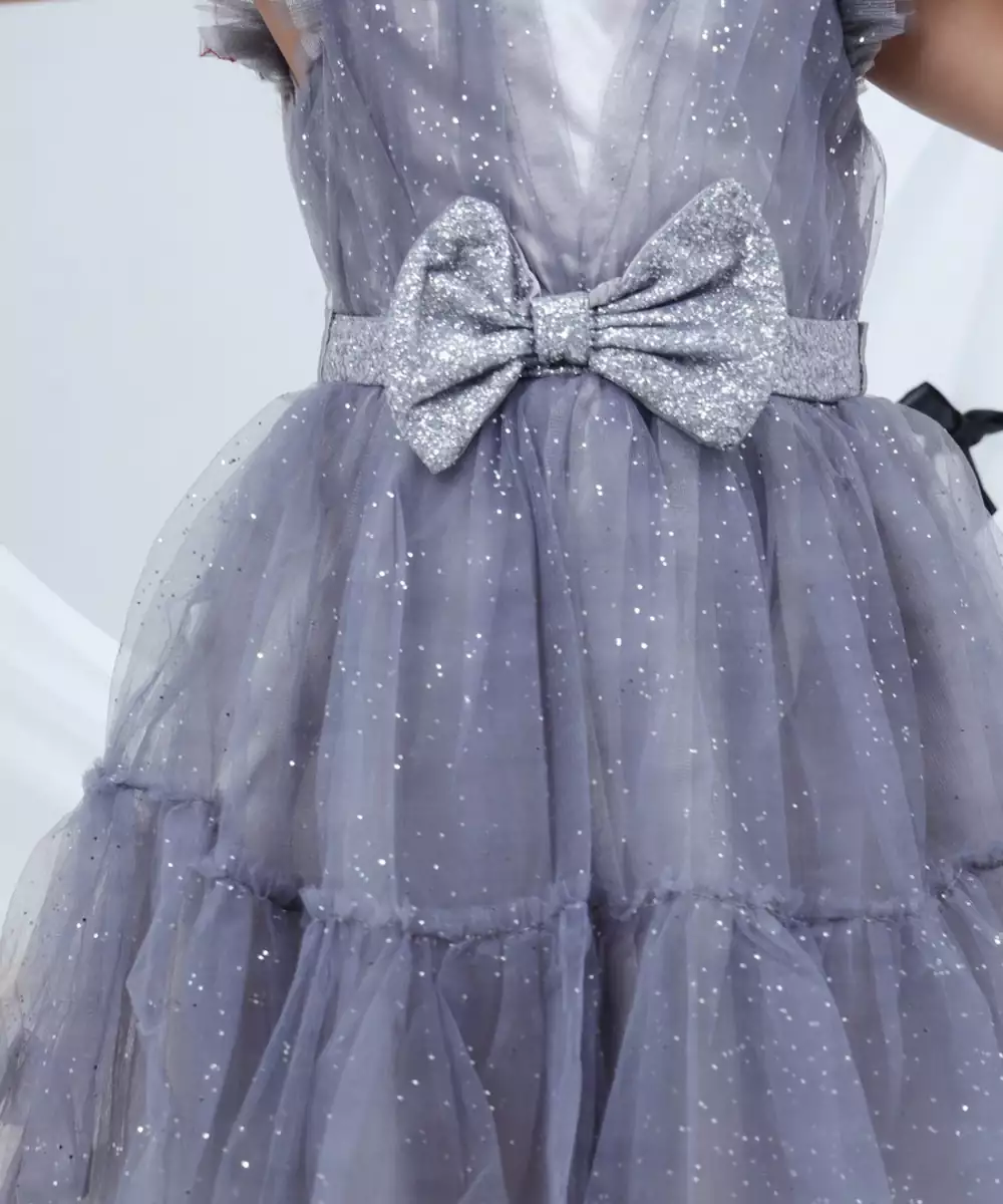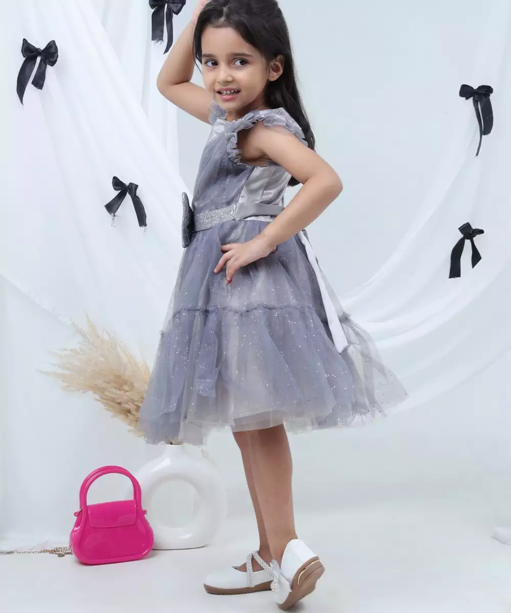 Lil Drama Sleeveless Silver Bow At Waist Dress Grey Colour: Grey Fabric: Net Components: 1 Dress