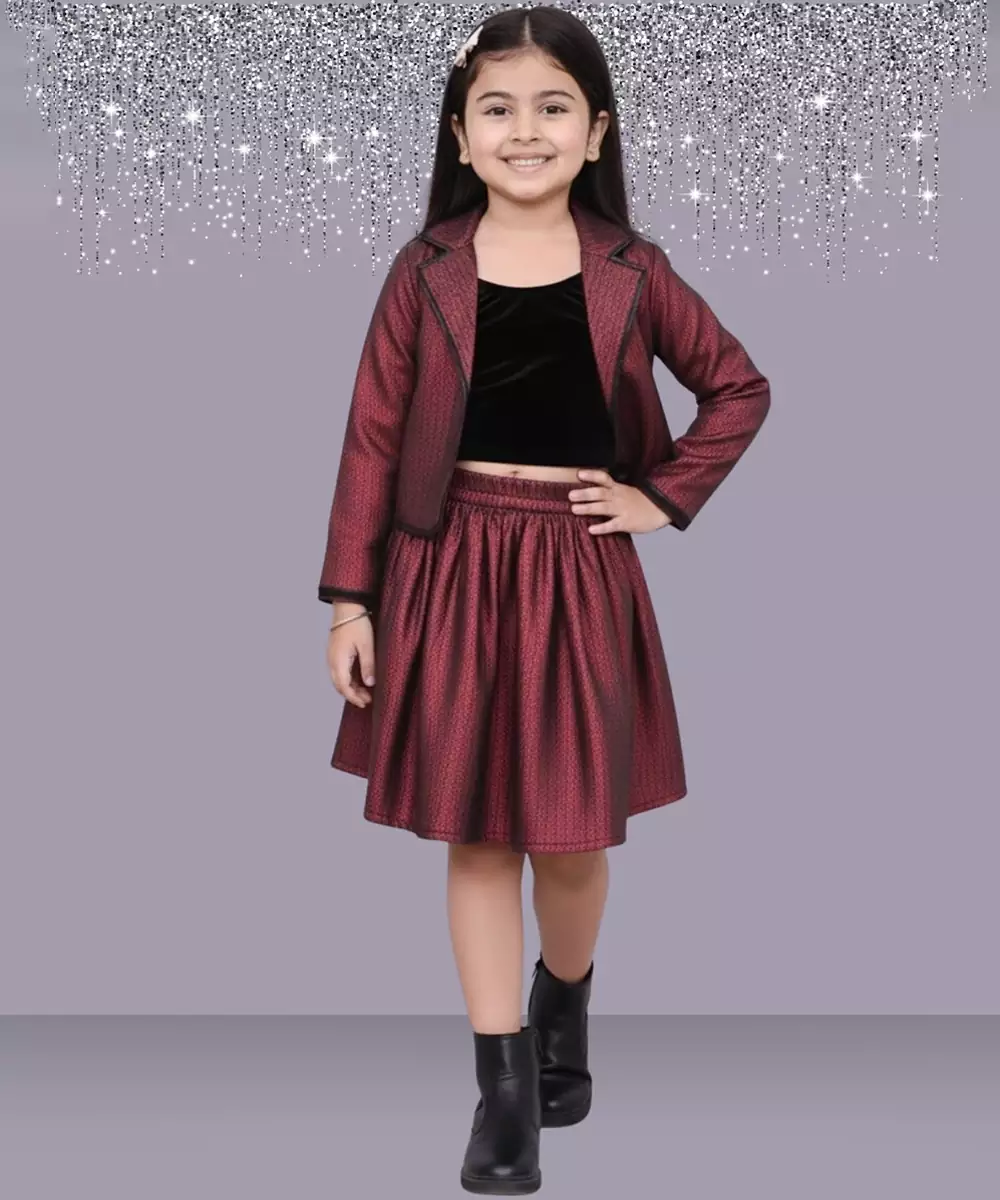 This Maroon Velvet Co Ord Set Offers A Luxurious Feel With Its Soft Texture And Woven Detailing. The Coordinated Pieces Ensure A Cohesive Look, While The Deep Hue Adds Festive Charm. Ideal For Winter Occasions, It Balances Warmth, Comfort, And Elegance.