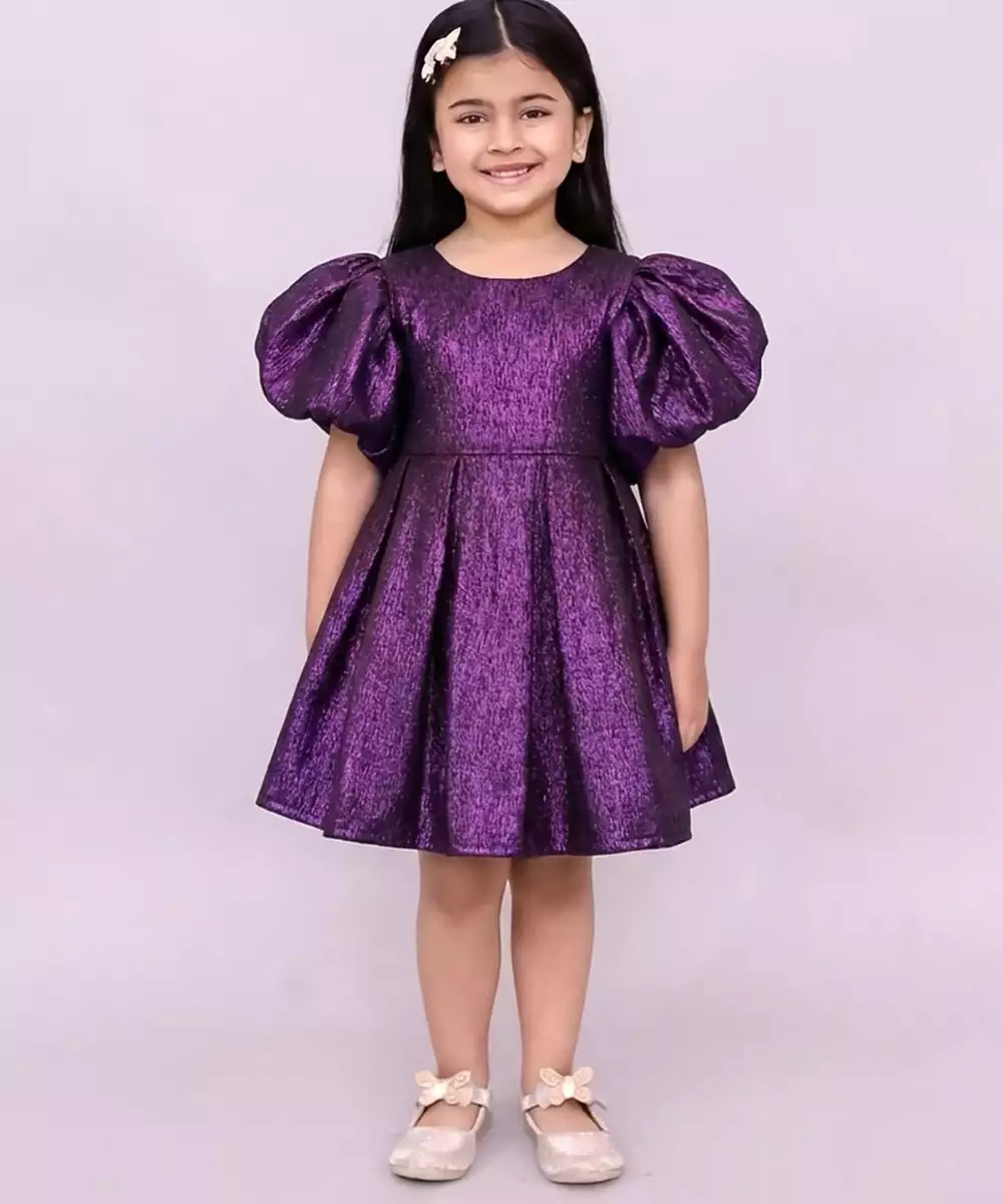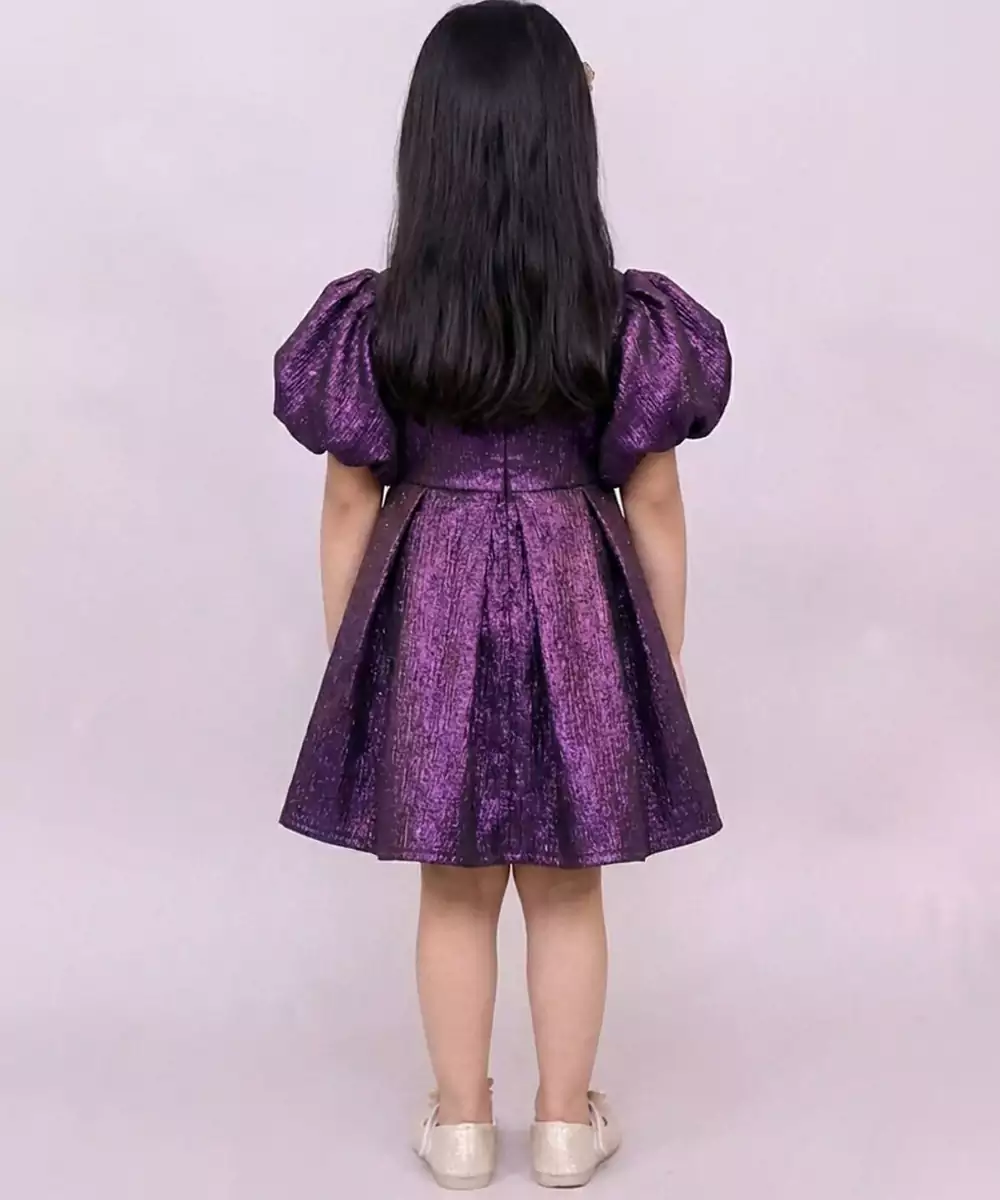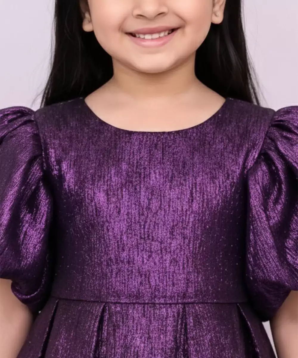 This Purple Woven Jacquard Dress Showcases Elegant Motifs And A Rich Tone. The Textured Fabric Provides Structure And Visual Interest, Making It Suitable For Celebrations And Formal Gatherings. Its Graceful Silhouette And Refined Finish Create A Stylish And Polished Outfit.