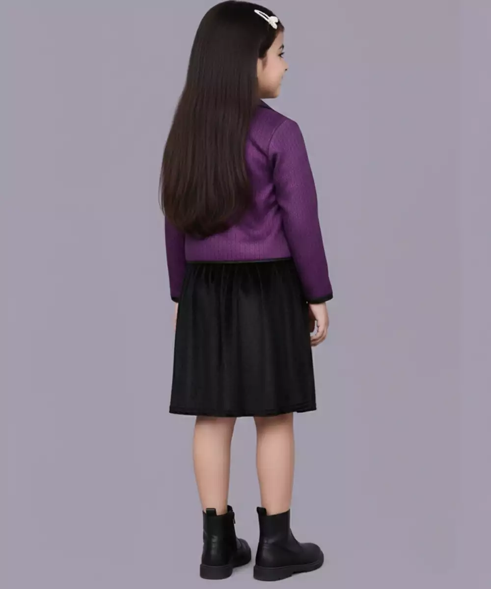 Designed In Plush Velvet, This Purple Co Ord Set Features A Subtle Woven Pattern That Enhances Its Elegance. The Coordinated Pieces Create A Complete, Polished Look Suitable For Festive Gatherings And Evening Events. Its Rich Tone Ensures Standout Appeal And Comfort.