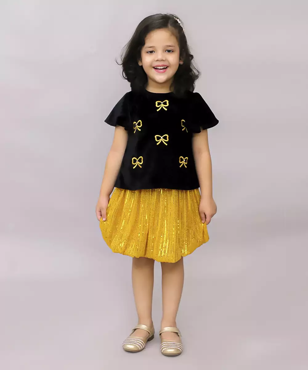 Lil Drama Velvet Embroidery Top With Sequence Shorts Sets For Girls Red Colour: Black Fabric: Cotton Components : 1 Top / 1 Short