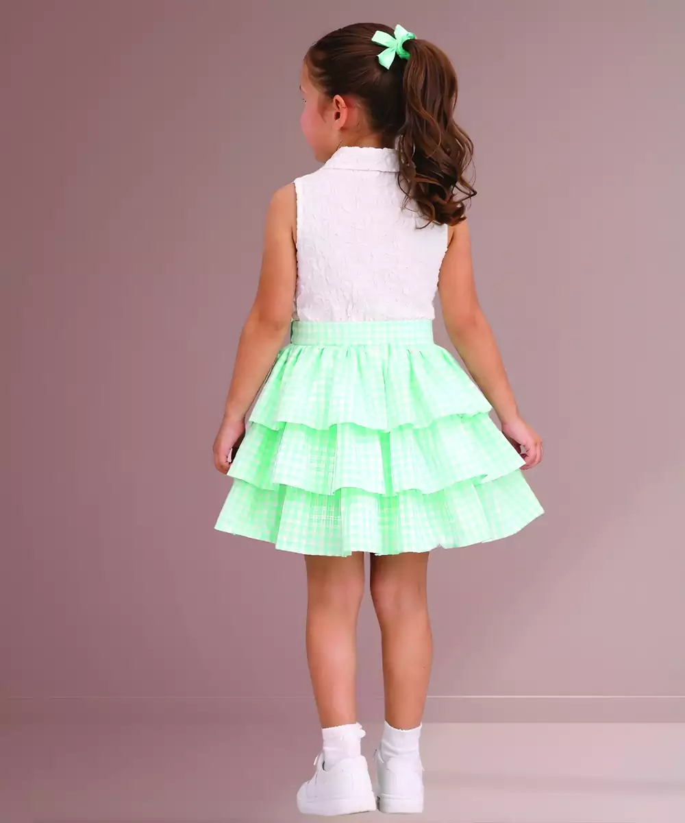 White Mint Green Woven Cotton Co Ord Set