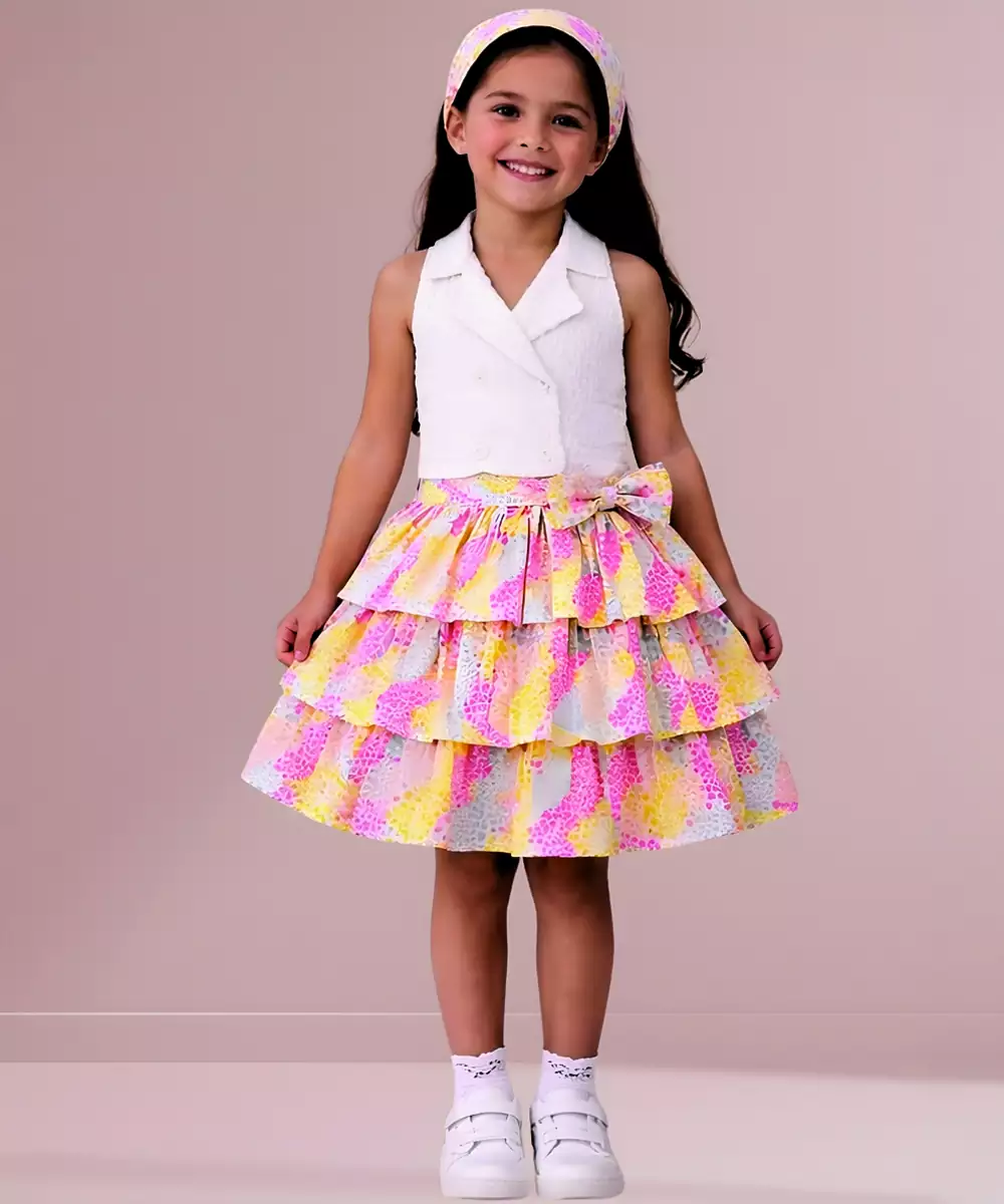 A Vibrant White Multicolor Woven Cotton Co Ord Set That Brings Together Playful Hues And Comfortable Fabric. Perfect For Casual Outings, Its Breathable Cotton Ensures Ease Of Wear, While The Colorful Design Adds A Lively And Fashionable Touch.