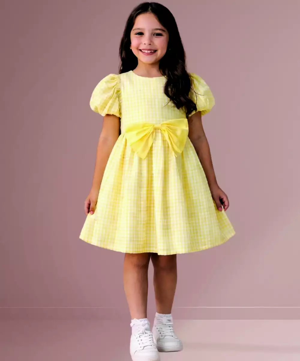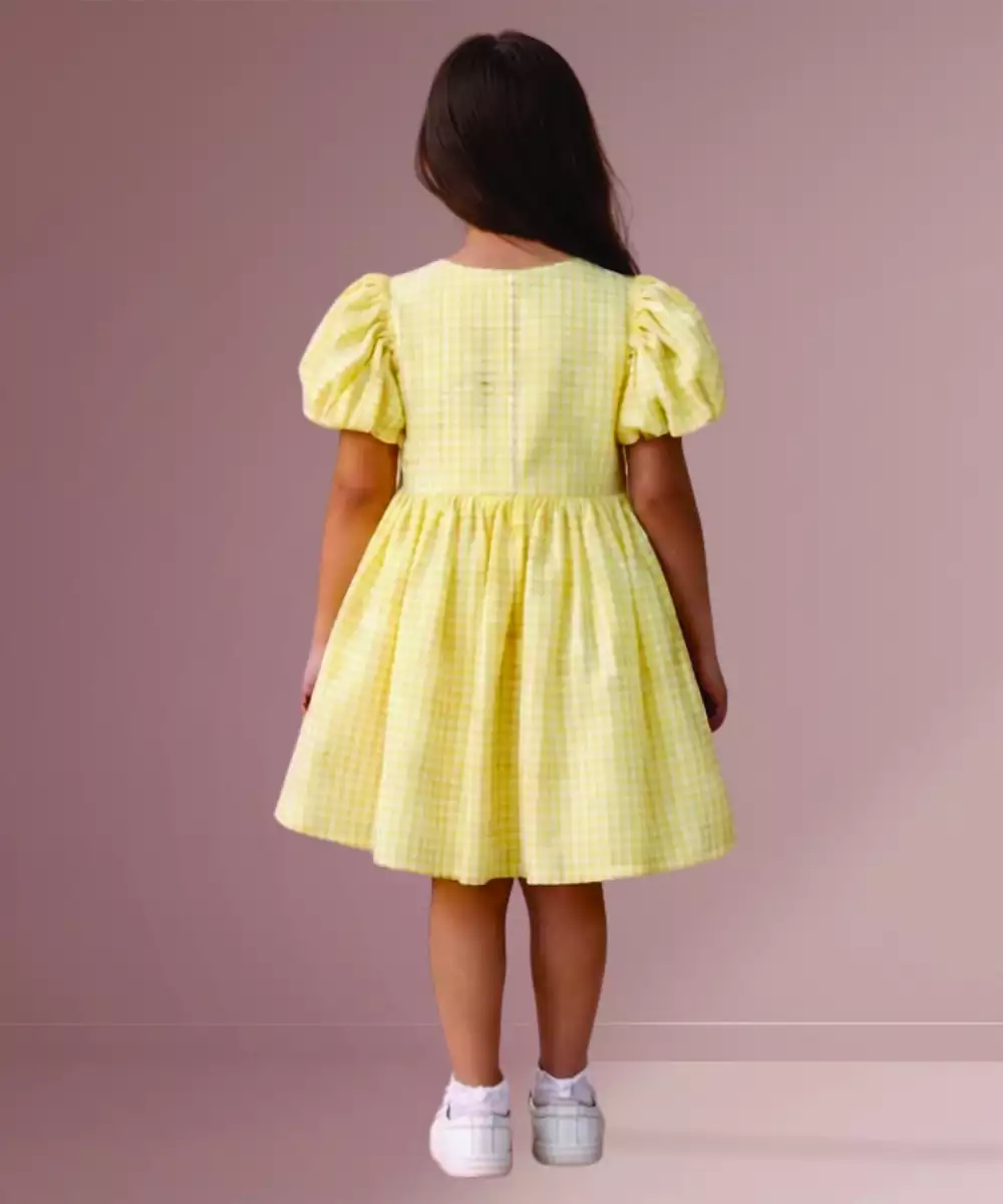 This Yellow Woven Cotton Dress Offers A Blend Of Simplicity And Elegance. Crafted From Breathable Cotton, It Ensures Comfort And Ease Of Wear. Its Subtle Texture And Bright Tone Make It Suitable For Everyday Outings And Casual Gatherings With Effortless Style.