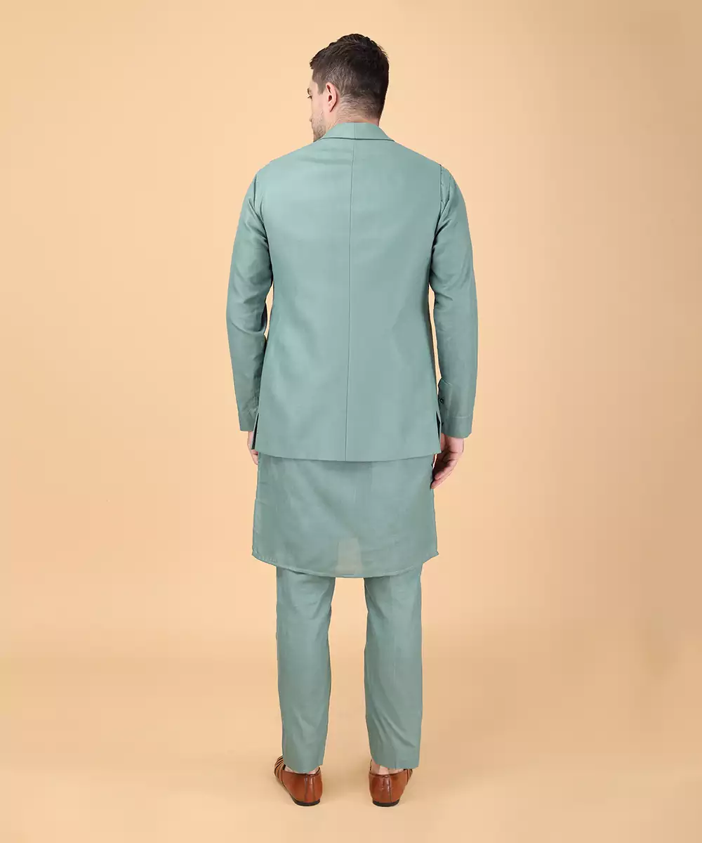 Olive Green Embroidered Jute Jacket With Kurta & Pant