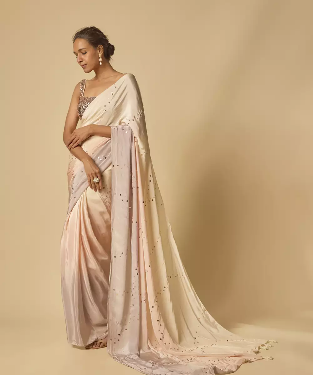 Featuring Beige To Lilac Ombre Sequin Embroidered Saree In Natural Crepe With Mashroo Embroidered Blouse Colour: Multicolor Fabric: Crepe Components : 1 Saree / 1 Blouse