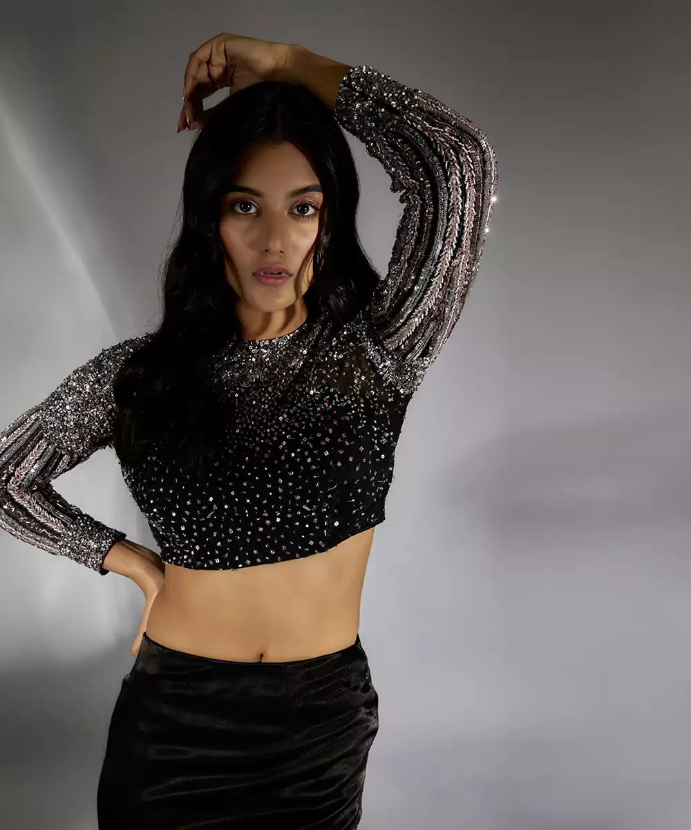 Featuring Black Slkirt Set With Embriodery On The Top And Mashroo Skirt. .
