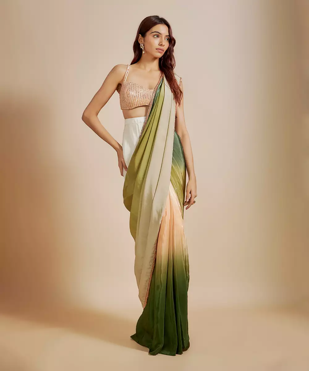 Featuring Green Ombre Saree With Embroidered Blouse.