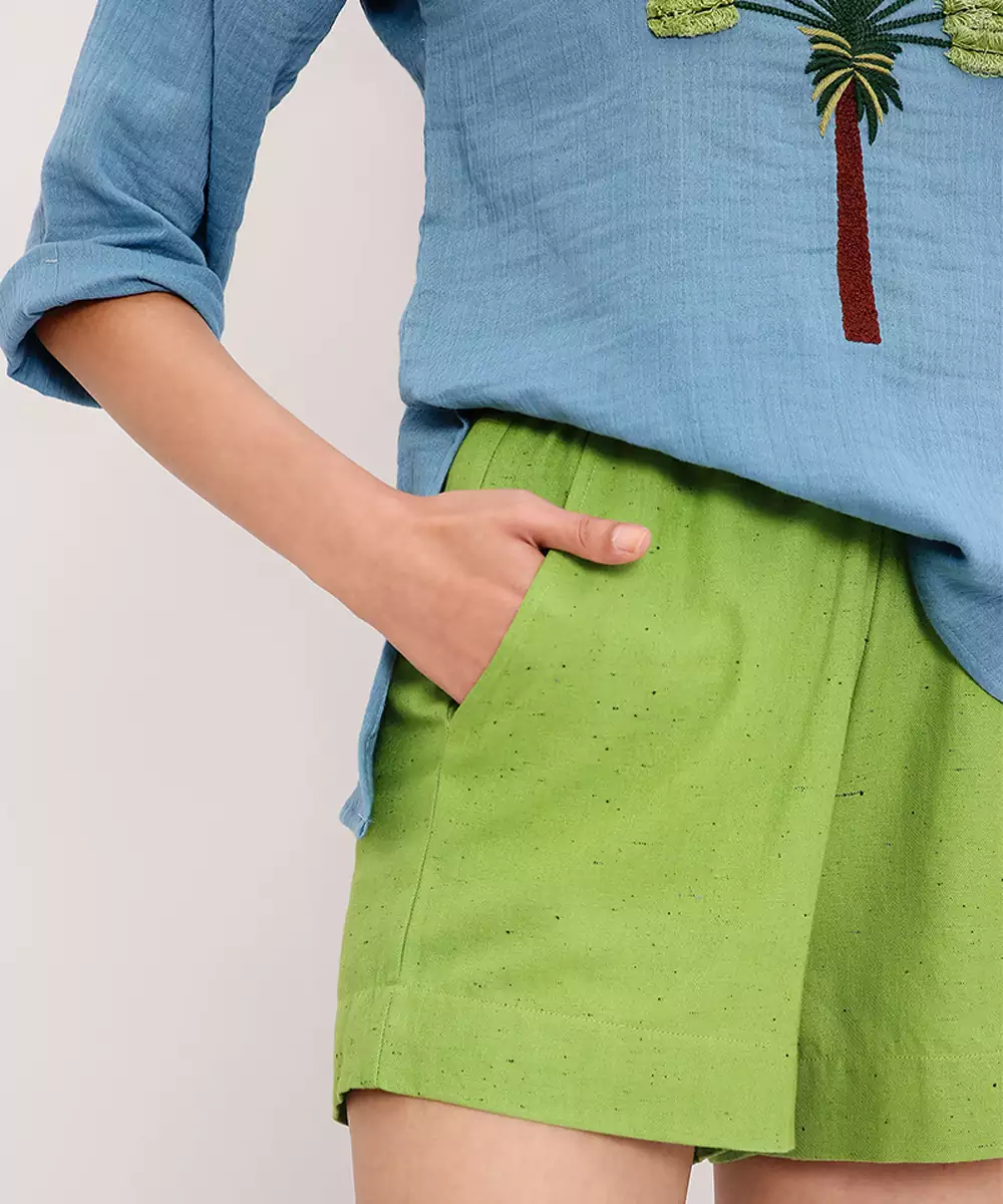 Blue And Green Embroidered Cotton Co Ord Set