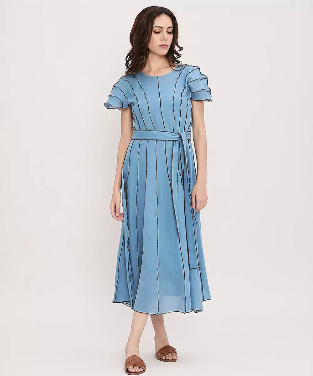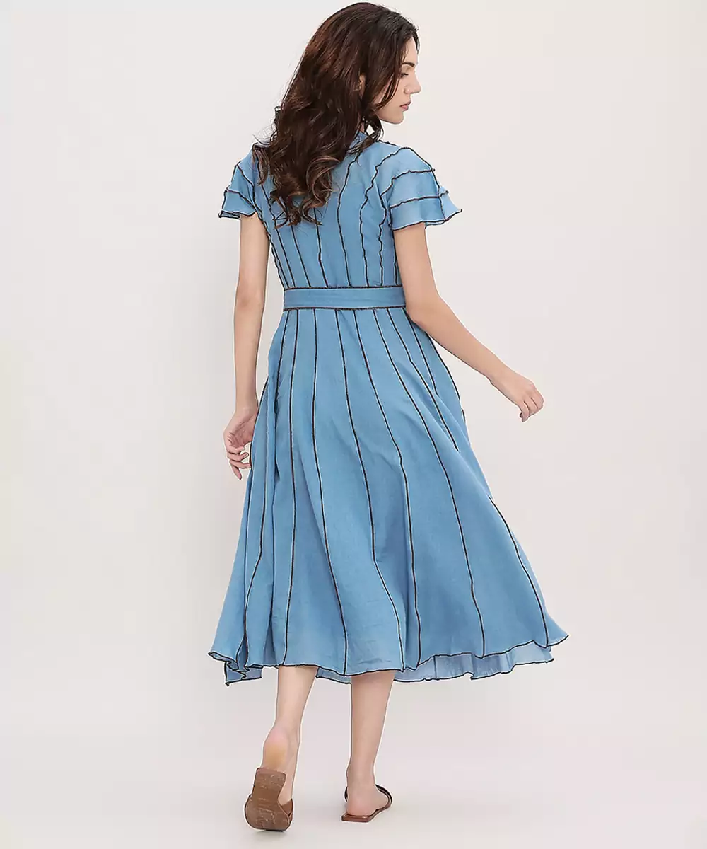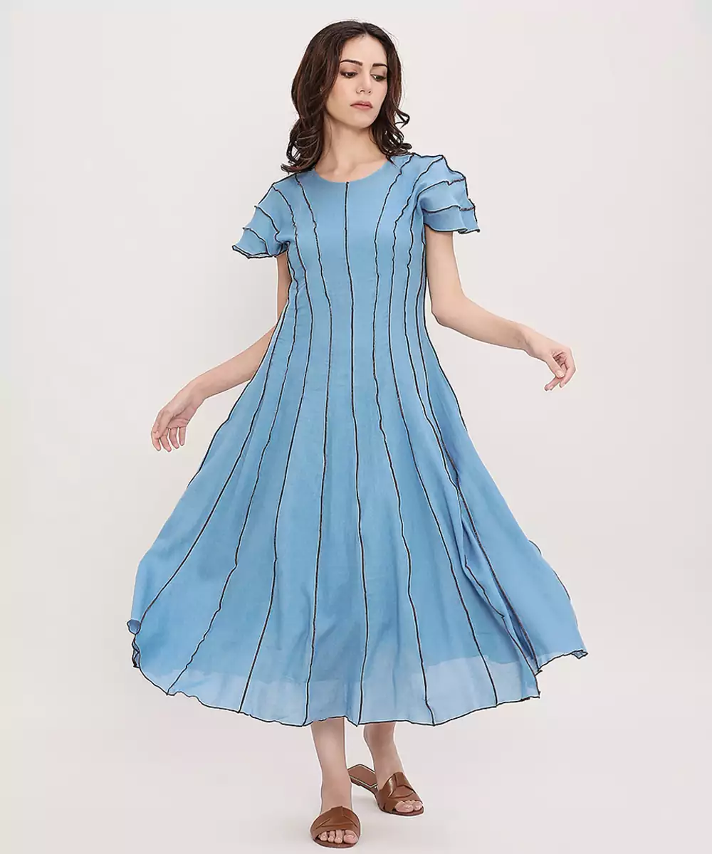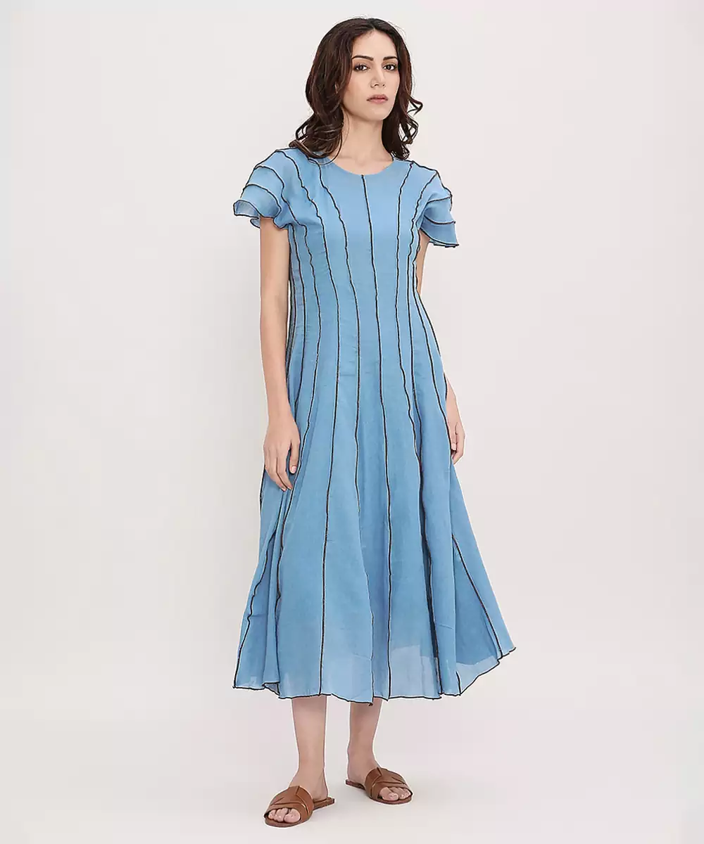 This Blue Cotton Dress Blends Comfort With Understated Elegance. Made From Soft, Breathable Cotton, It Offers A Lightweight, Airy Feel While Draping Gracefully. Its Simple Yet Refined Design Makes It Perfect For Casual Outings, Office Wear, Or Relaxed Gatherings. A Versatile Wardrobe Essential With Timeless Charm And Effortless Style.