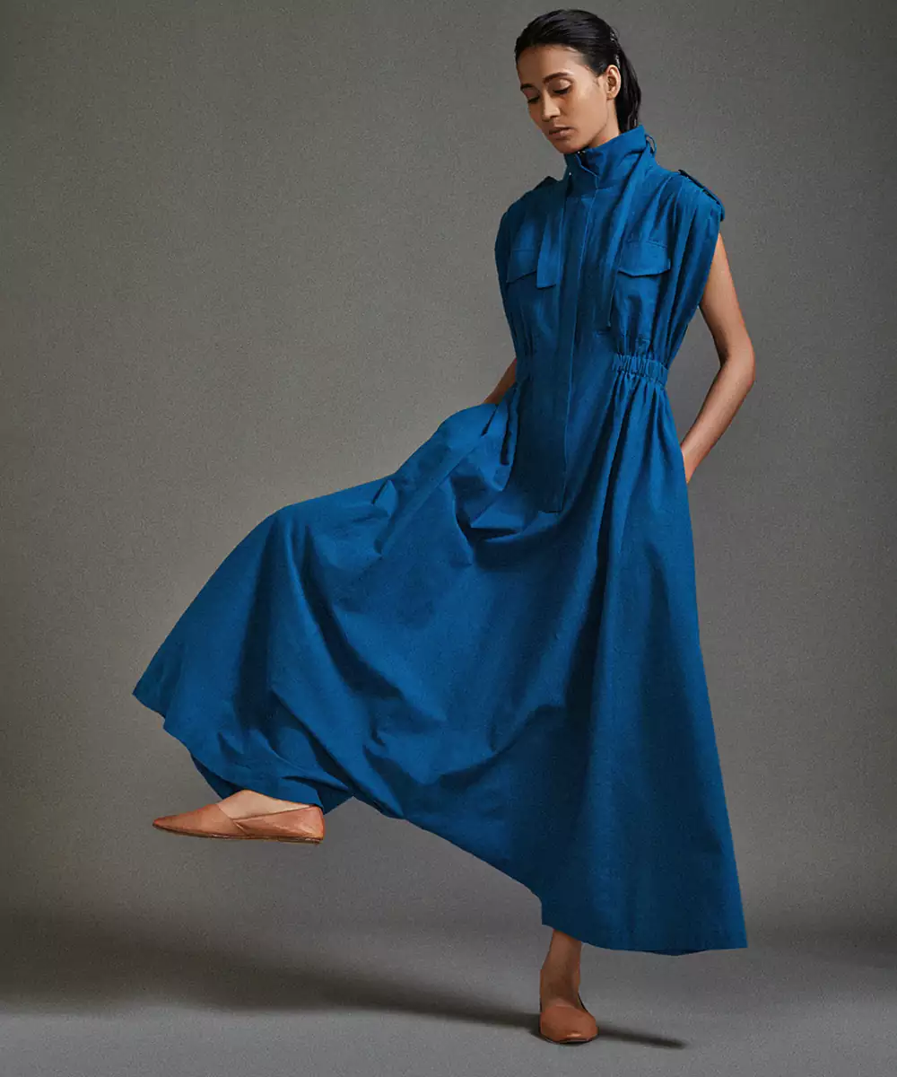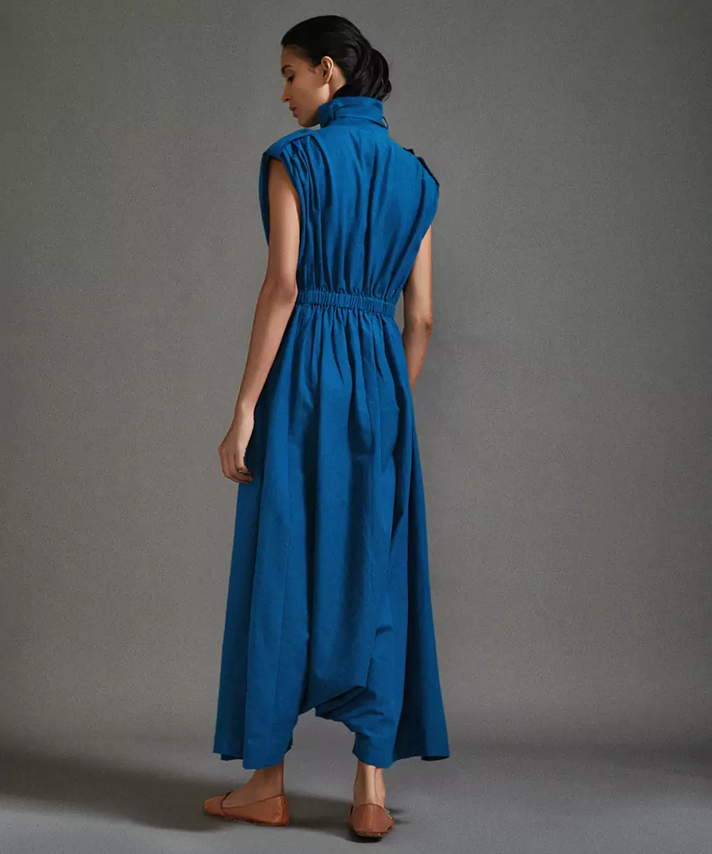 This Blue Cotton Dress Radiates Vibrant Charm And Everyday Comfort. Crafted From Soft, Breathable Cotton, It Offers A Lightweight Feel And A Flattering Drape. Its Bright Hue And Easy Silhouette Make It Perfect For Casual Outings, Daytime Events, Or Relaxed Gatherings, Delivering Effortless Style With A Fresh, Cheerful Appeal.