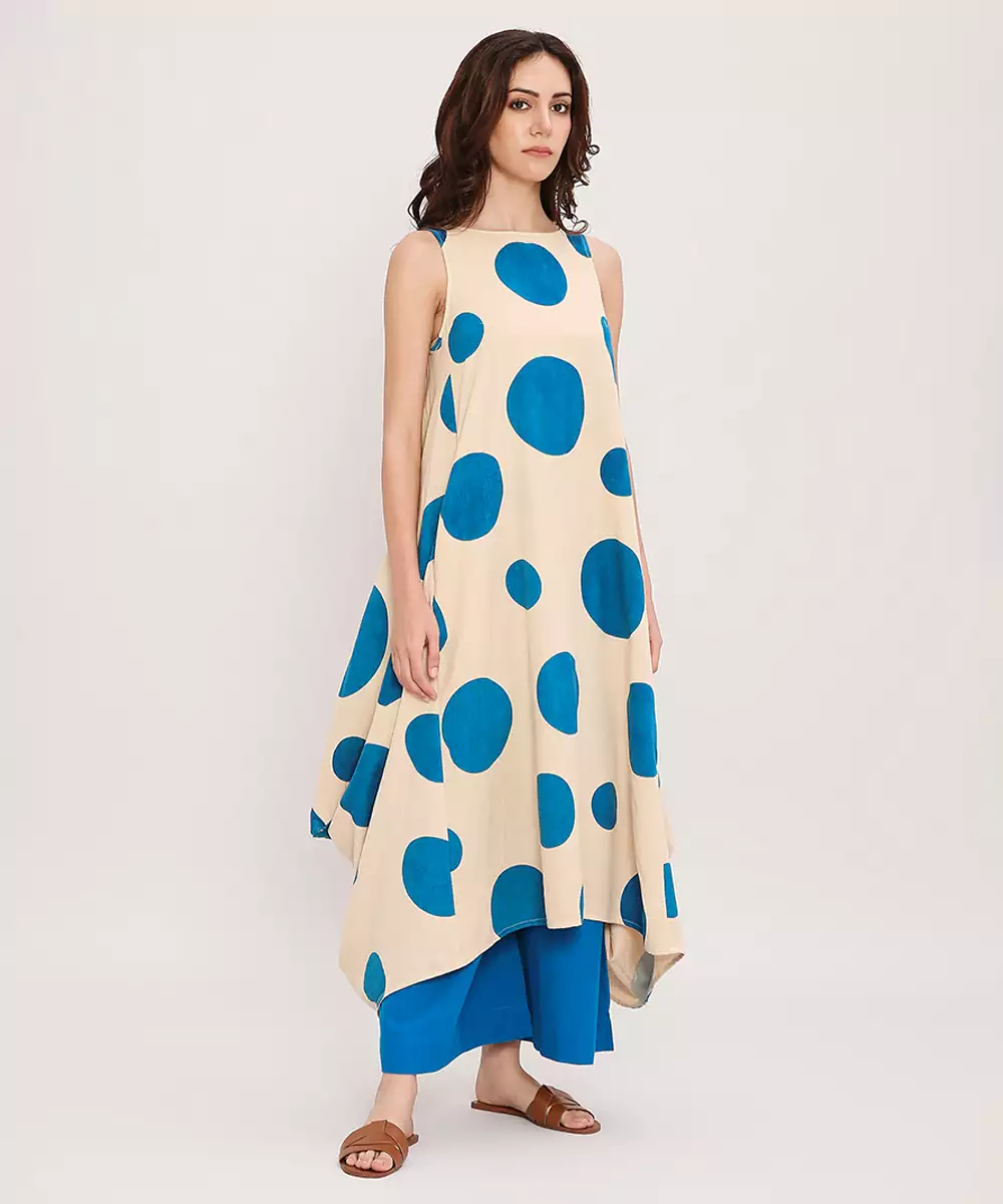 This Blue Printed Cotton Polka Co Ord Set Brings Together Vibrant Charm And Everyday Comfort. Crafted From Soft, Breathable Cotton, It Features Lively Prints That Add A Cheerful Touch. Its Easy, Flattering Silhouette Makes It Perfect For Casual Outings, Daytime Events, Or Relaxed Gatherings, Offering Effortless Style With A Fresh, Graceful Appeal.