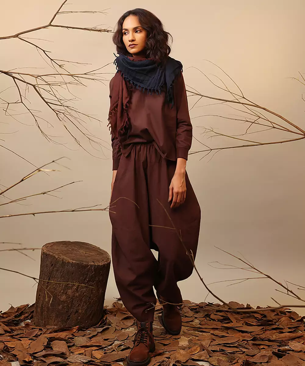 This Brown Cotton Co Ord Set Blends Comfort With Contemporary Style. Made From Soft, Breathable Cotton, It Features A Coordinated Top And Bottom That Create A Polished, Effortless Look. Perfect For Casual Outings, Travel, Or Everyday Wear, It Offers Ease, Versatility, And A Chic Aesthetic Suitable For Any Relaxed Occasion.