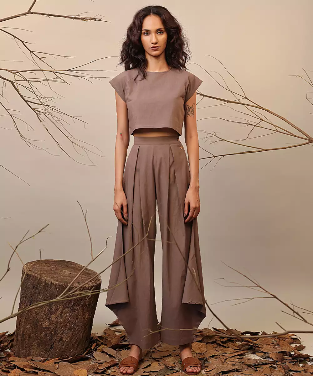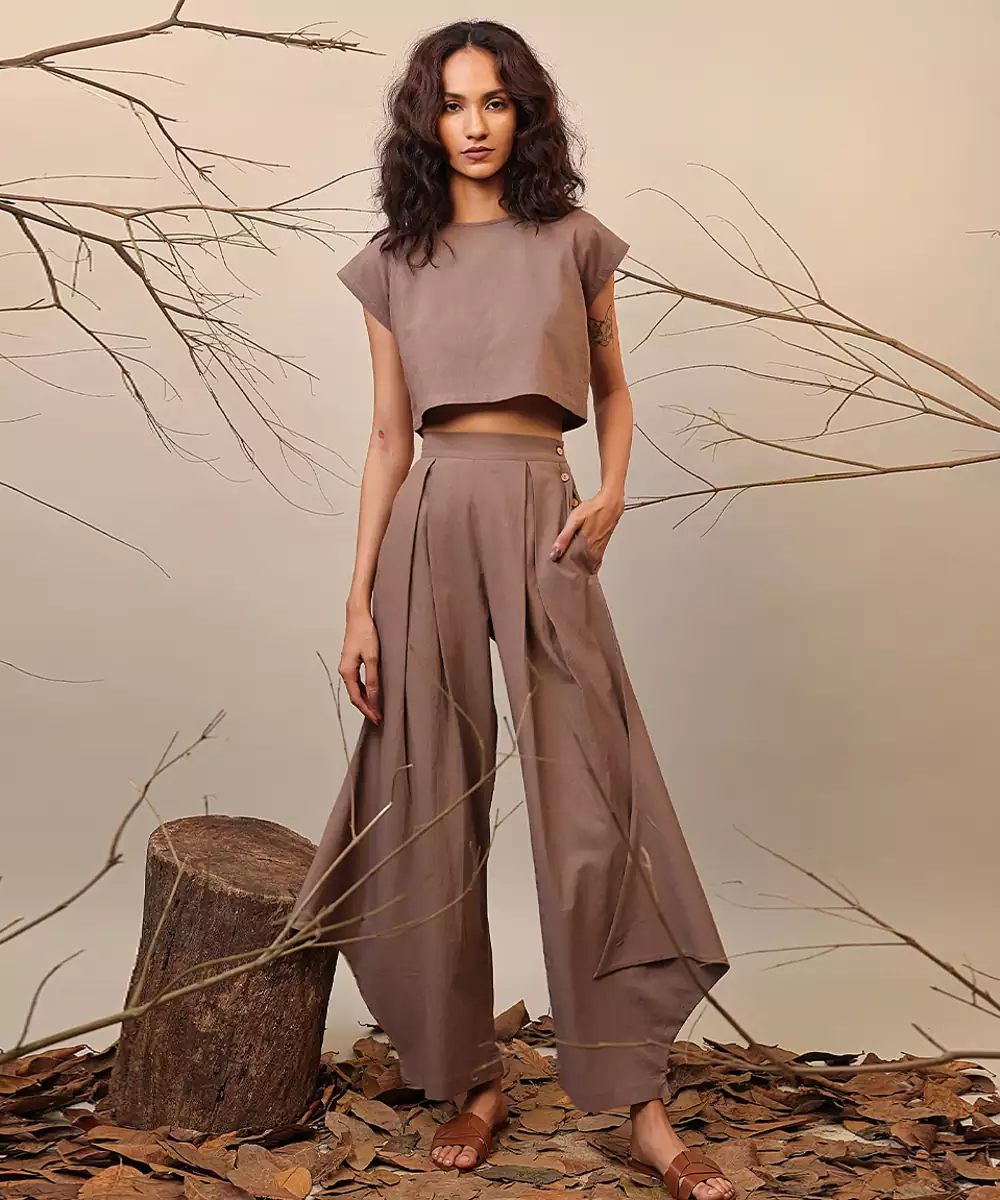 This Brown Cotton Co Ord Set Blends Comfort With Contemporary Style. Made From Soft, Breathable Cotton, It Features A Coordinated Top And Bottom That Create A Polished, Effortless Look. Perfect For Casual Outings, Travel, Or Everyday Wear, It Offers Ease, Versatility, And A Chic Aesthetic Suitable For Any Relaxed Occasion.