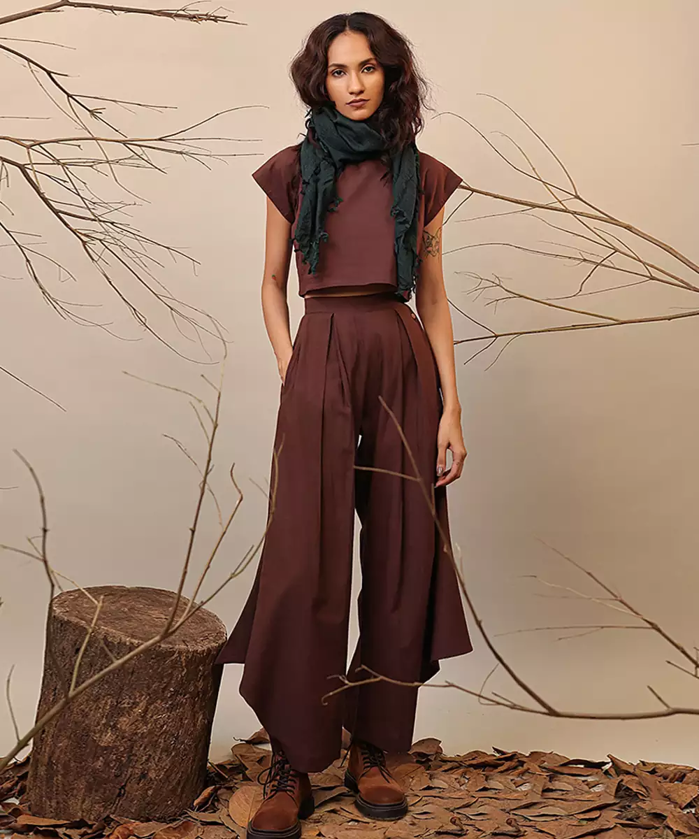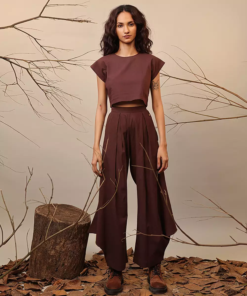 This Brown Cotton Co Ord Set Blends Comfort With Contemporary Style. Made From Soft, Breathable Cotton, It Features A Coordinated Top And Bottom That Create A Polished, Effortless Look. Perfect For Casual Outings, Travel, Or Everyday Wear, It Offers Ease, Versatility, And A Chic Aesthetic Suitable For Any Relaxed Occasion.