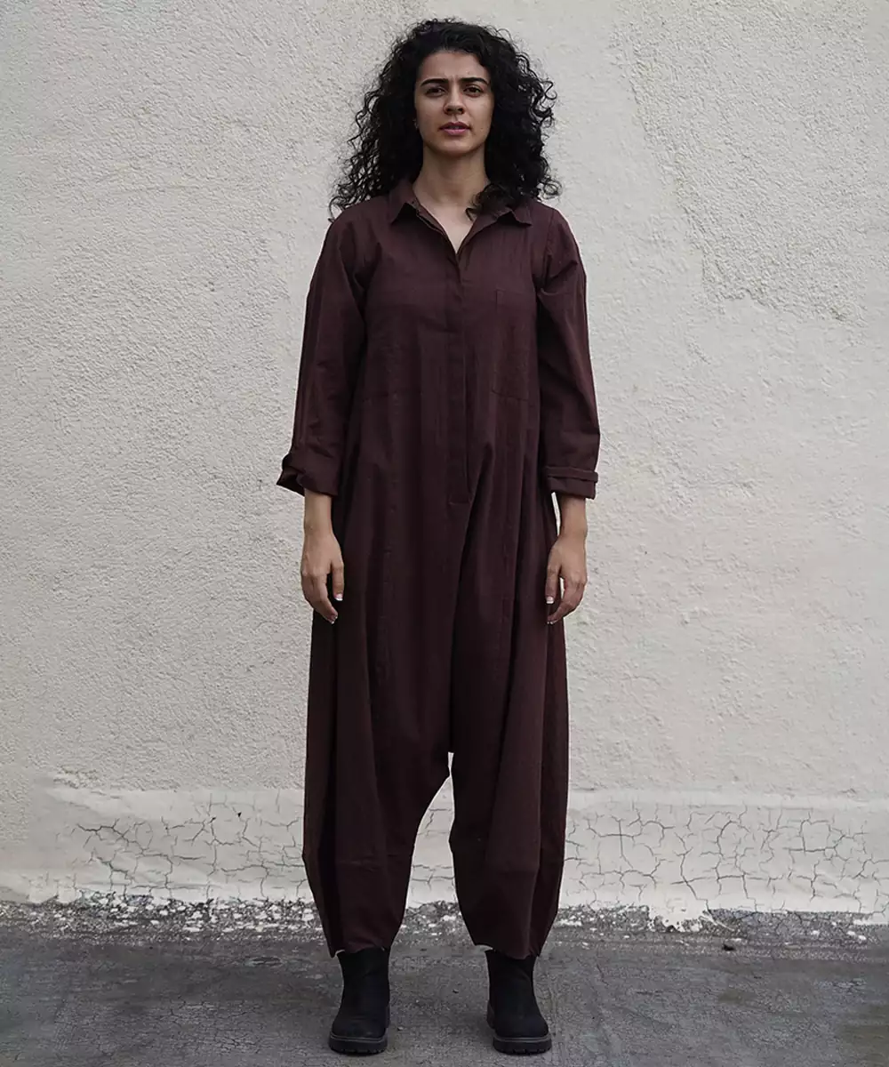 This Brown Cotton Jumpsuit Blends Refreshing Color With Effortless Comfort. Crafted From Soft, Breathable Cotton, It Offers A Lightweight Feel And A Flattering Drape. Its Simple Yet Elegant Design Makes It Ideal For Casual Outings, Daytime Events, Or Everyday Wear. A Versatile Piece With Timeless Charm And Easy Sophistication.