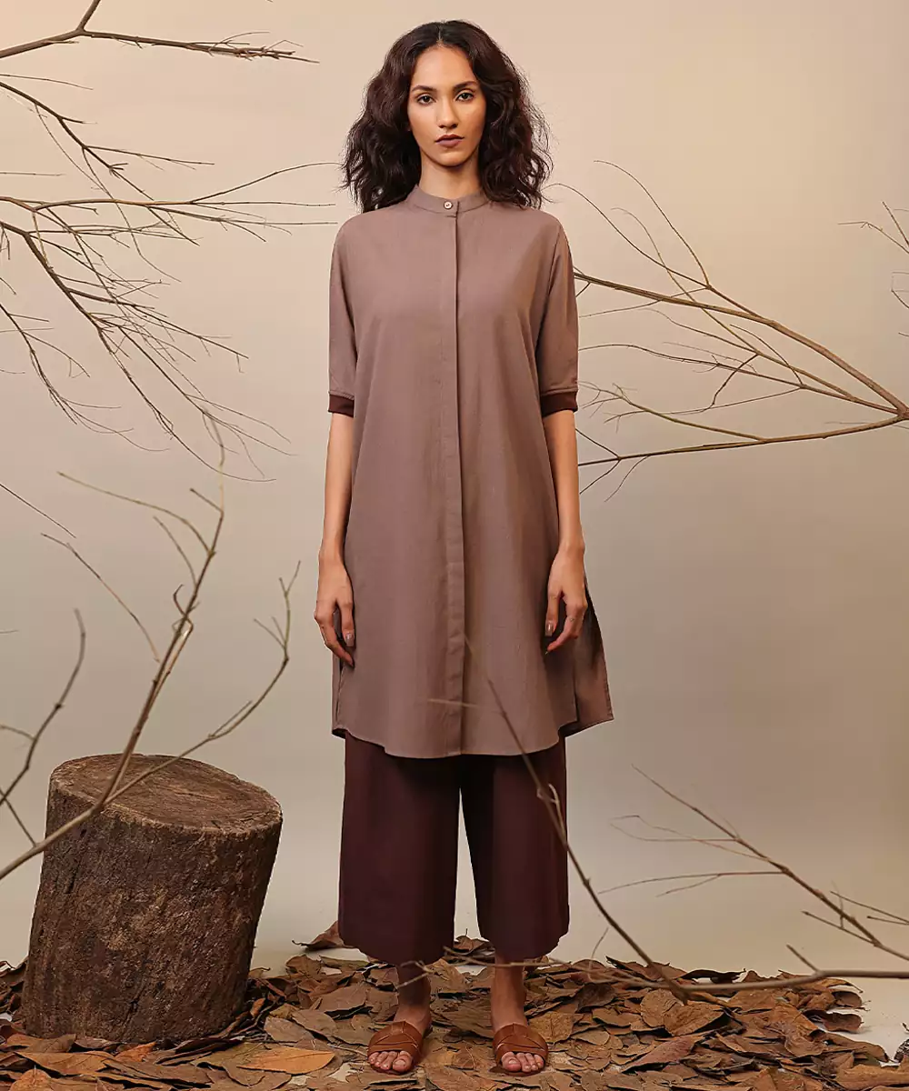 Brown Cotton Kurta Set