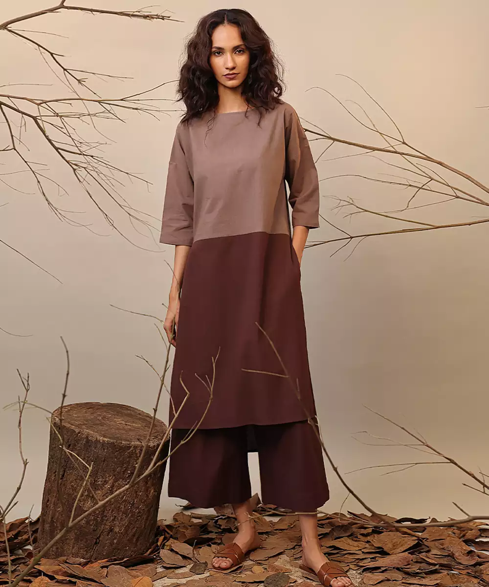 This Brown Cotton Kurta Brings Vibrant Charm To Everyday Style With Its Soft, Breathable Fabric And Eye Catching Prints. The Comfortable Silhouette Ensures Ease Of Wear, While Coordinated Pieces Create A Polished Look. Perfect For Casual Outings, Workdays, Or Festive Gatherings, It Blends Comfort, Color, And Effortless Elegance Beautifully.