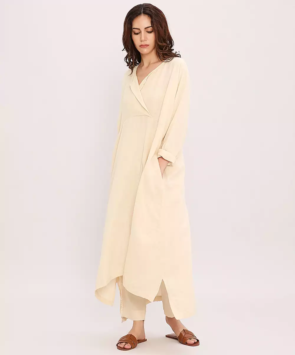 This Cream Cotton Kurta Combines Effortless Comfort With Timeless Elegance. Crafted From Soft, Breathable Cotton, It Ensures All Day Ease While Maintaining A Graceful Silhouette. Its Minimalist Design And Subtle Charm Make It Perfect For Casual Outings, Office Wear, Or Festive Occasions. A Versatile Wardrobe Staple For Refined, Everyday Style.