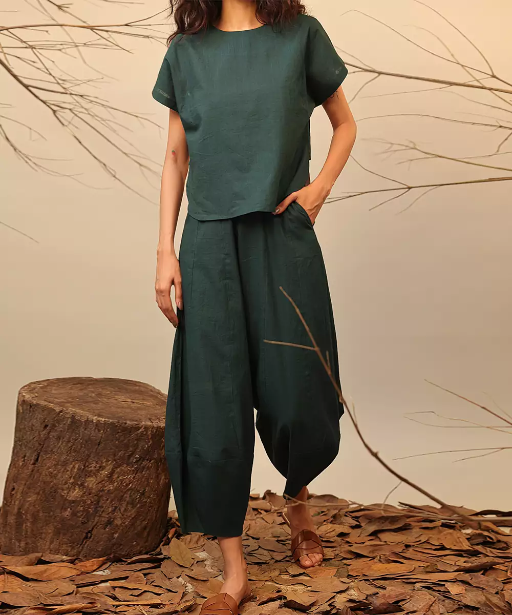 This Green Cotton Co Ord Set Blends Comfort With Contemporary Style. Made From Soft, Breathable Cotton, It Features A Coordinated Top And Bottom That Create A Polished, Effortless Look. Perfect For Casual Outings, Travel, Or Everyday Wear, It Offers Ease, Versatility, And A Chic Aesthetic Suitable For Any Relaxed Occasion.