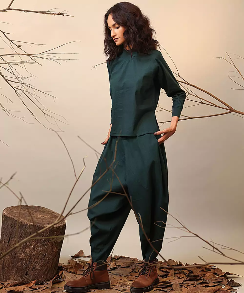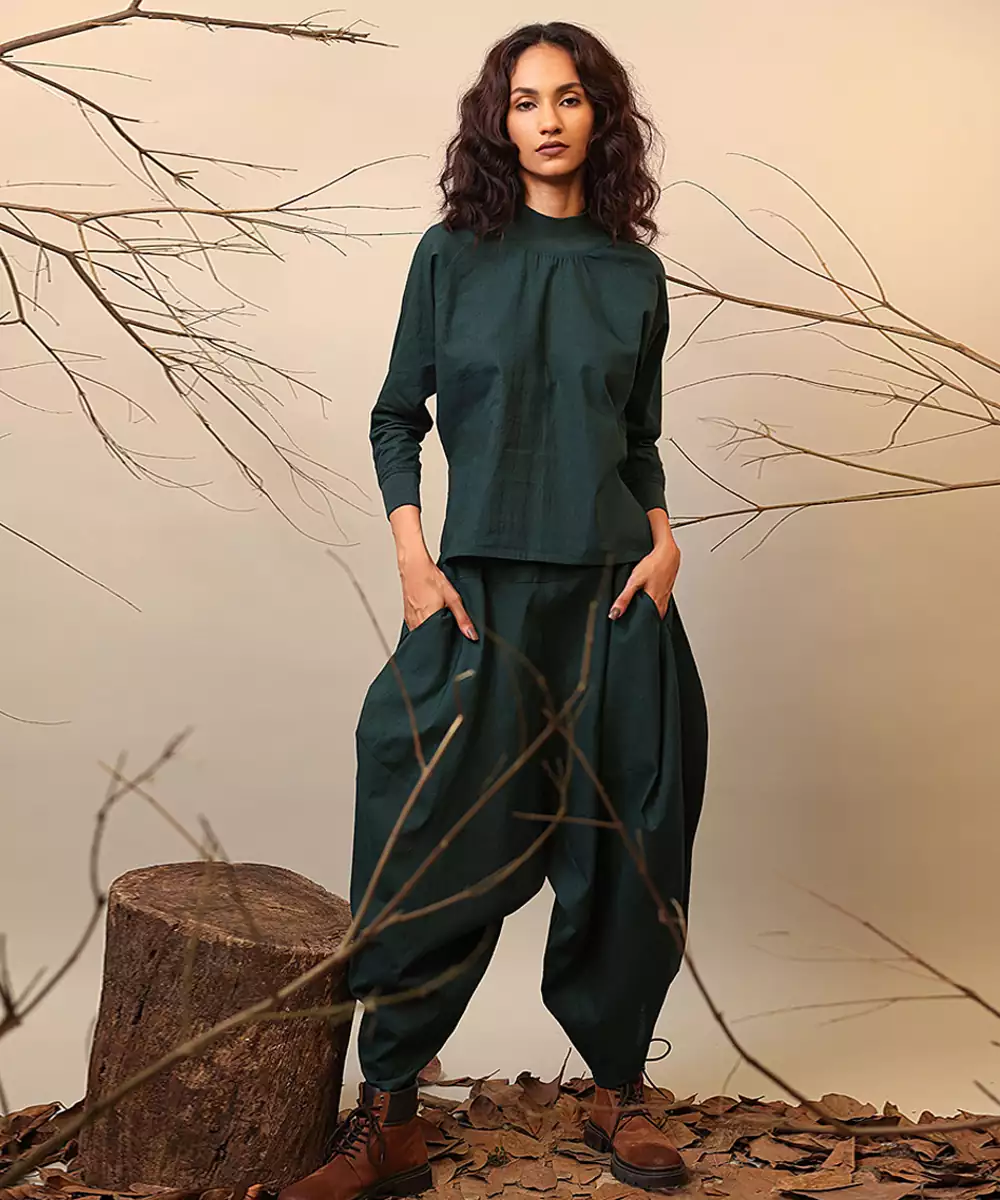 This Green Cotton Co Ord Set Blends Comfort With Contemporary Style. Made From Soft, Breathable Cotton, It Features A Coordinated Top And Bottom That Create A Polished, Effortless Look. Perfect For Casual Outings, Travel, Or Everyday Wear, It Offers Ease, Versatility, And A Chic Aesthetic Suitable For Any Relaxed Occasion.