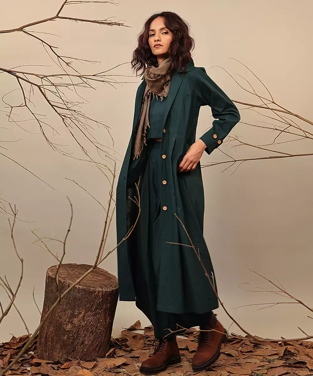 This Green Cotton Co Ord Set Blends Comfort With Contemporary Style. Made From Soft, Breathable Cotton, It Features A Coordinated Top And Bottom That Create A Polished, Effortless Look. Perfect For Casual Outings, Travel, Or Everyday Wear, It Offers Ease, Versatility, And A Chic Aesthetic Suitable For Any Relaxed Occasion.