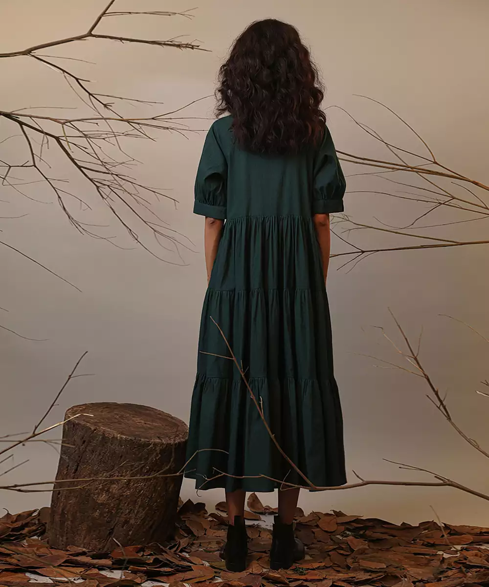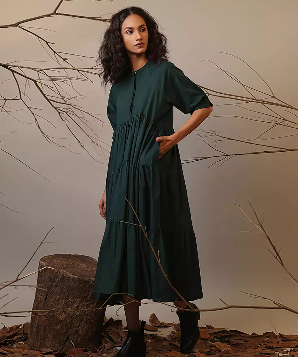 The Green Cotton Dress Offers A Perfect Blend Of Comfort And Simplicity. Crafted From Breathable Cotton, It Features A Soft Texture And A Flattering Silhouette For Everyday Wear. Its Refreshing Blue Shade Adds Charm, Making It Ideal For Casual Outings, Workdays, Or Relaxed Weekend Looks With Effortless Style.