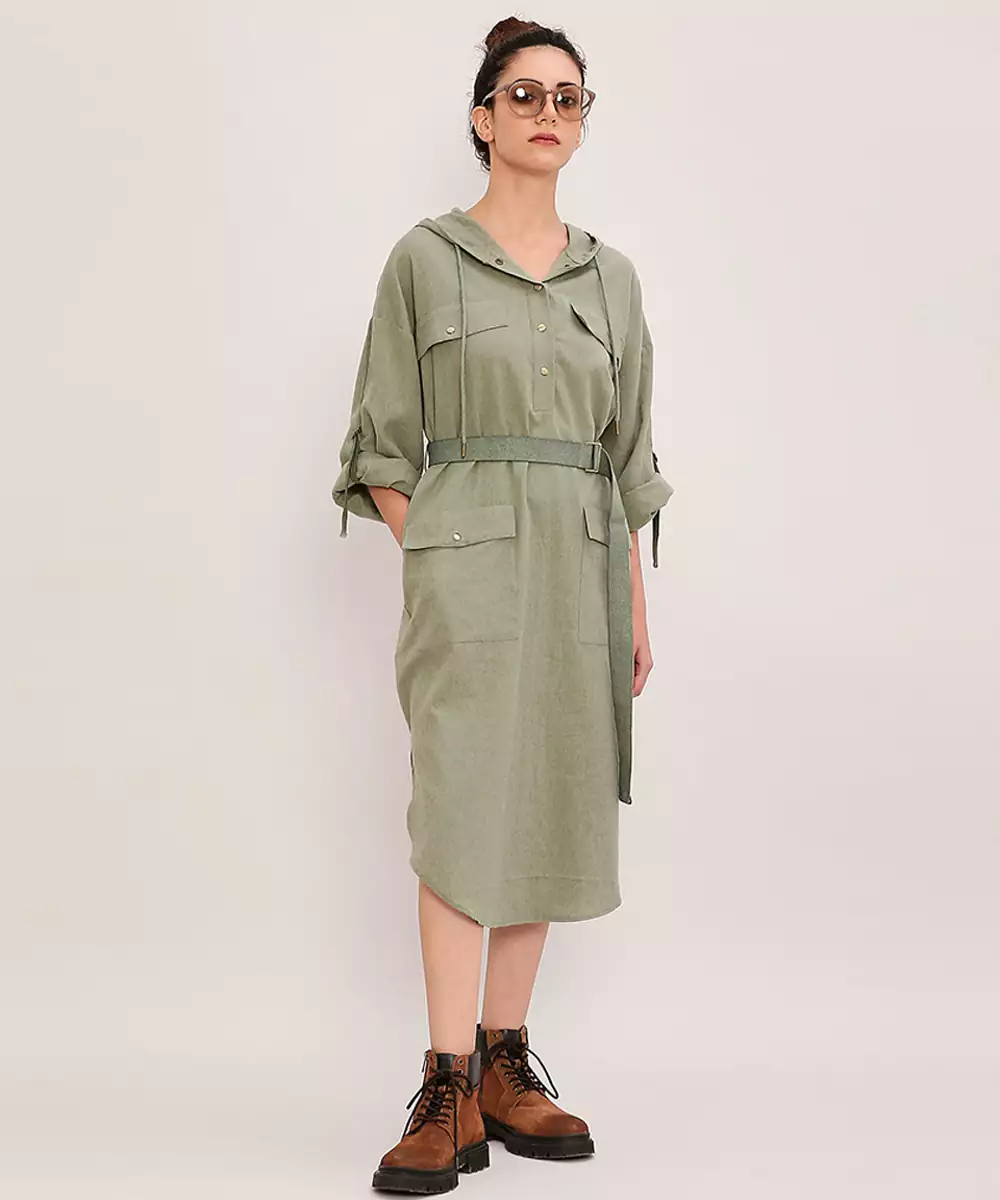 This Green Cotton Dress Blends Refreshing Color With Effortless Comfort. Crafted From Soft, Breathable Cotton, It Offers A Lightweight Feel And A Flattering Drape. Its Simple Yet Elegant Design Makes It Ideal For Casual Outings, Daytime Events, Or Everyday Wear. A Versatile Piece With Timeless Charm And Easy Sophistication.