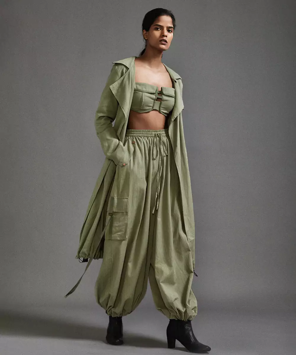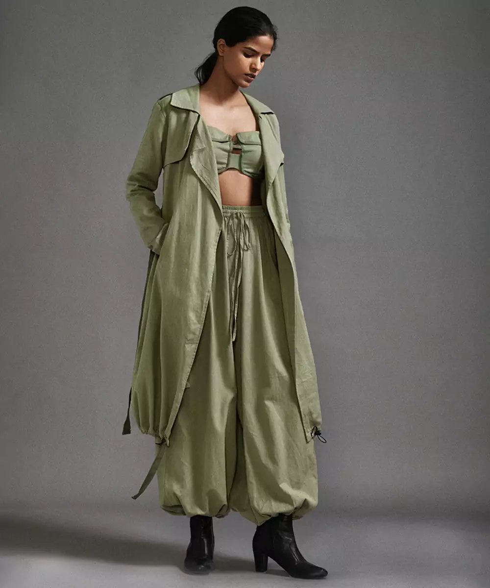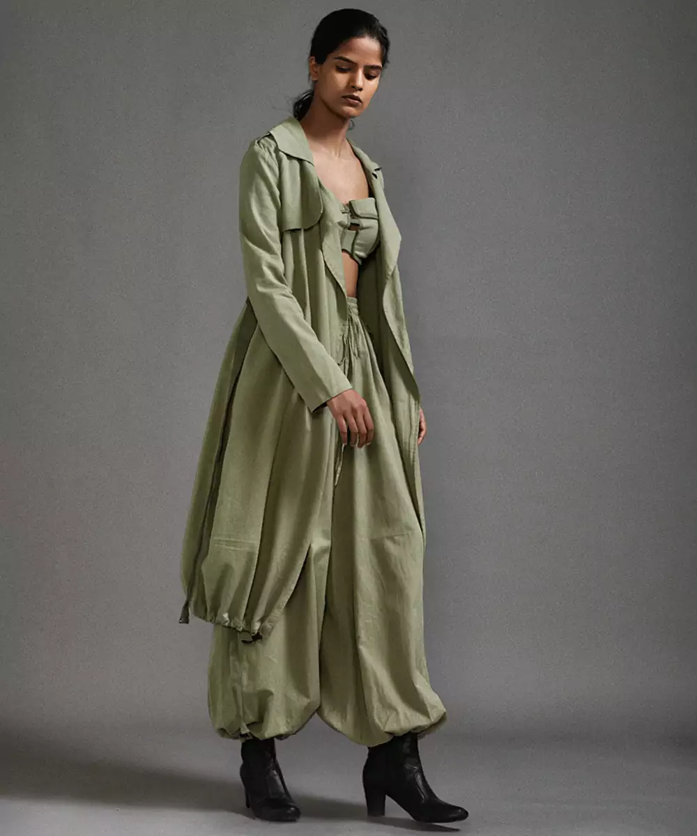 This Green Cotton Women’s Jacket With Belt Blends Structured Elegance With Everyday Comfort. Crafted From Soft, Breathable Cotton, It Features A Flattering Belted Silhouette That Enhances The Waist. Its Versatile Design Makes It Perfect For Layering Over Casual Or Ethnic Outfits, Adding A Polished, Contemporary Touch With Effortless Style.