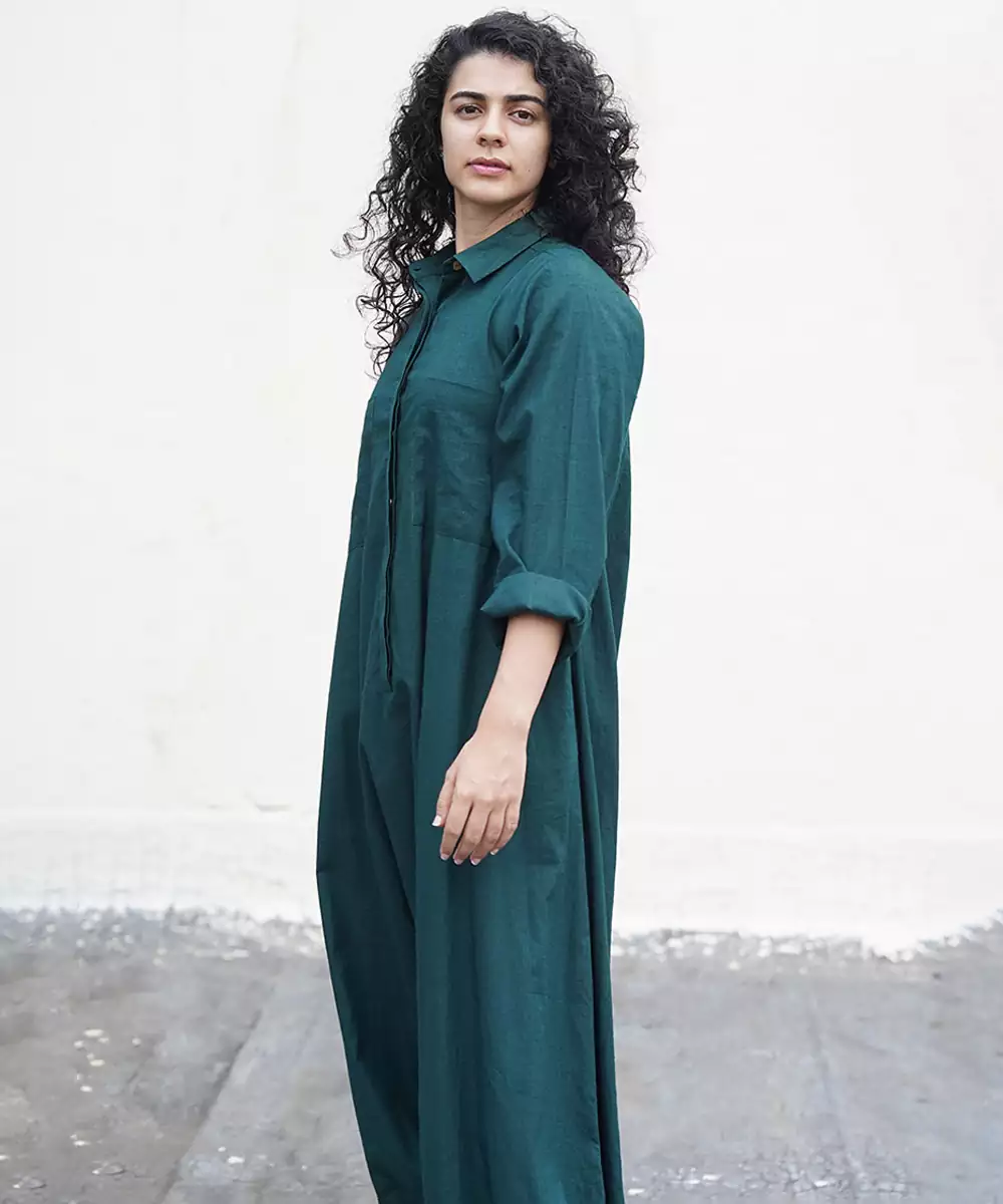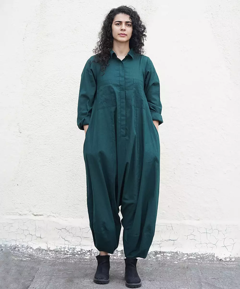 This Green Cotton Jumpsuit Blends Refreshing Color With Effortless Comfort. Crafted From Soft, Breathable Cotton, It Offers A Lightweight Feel And A Flattering Drape. Its Simple Yet Elegant Design Makes It Ideal For Casual Outings, Daytime Events, Or Everyday Wear. A Versatile Piece With Timeless Charm And Easy Sophistication.