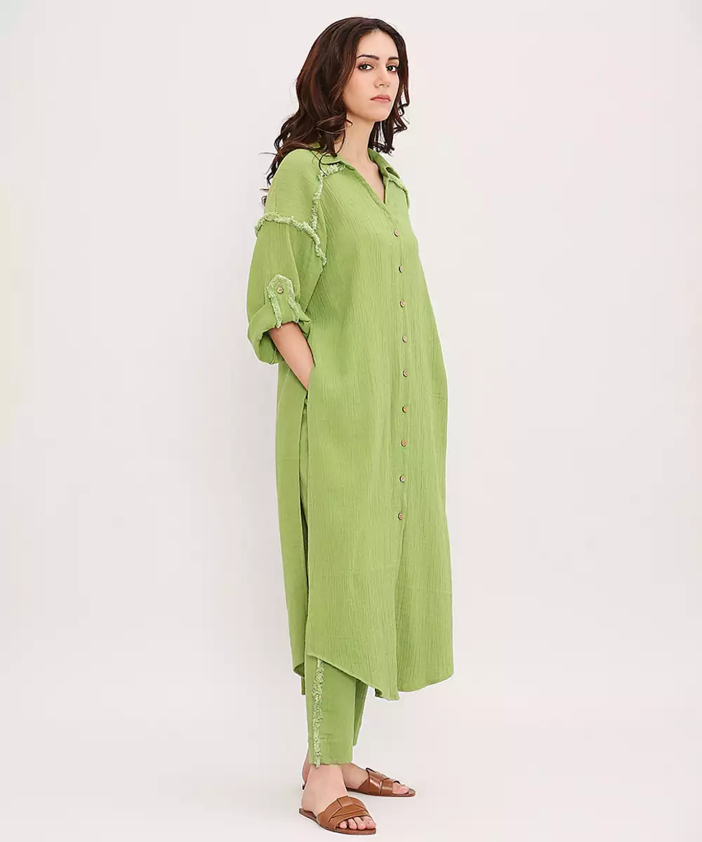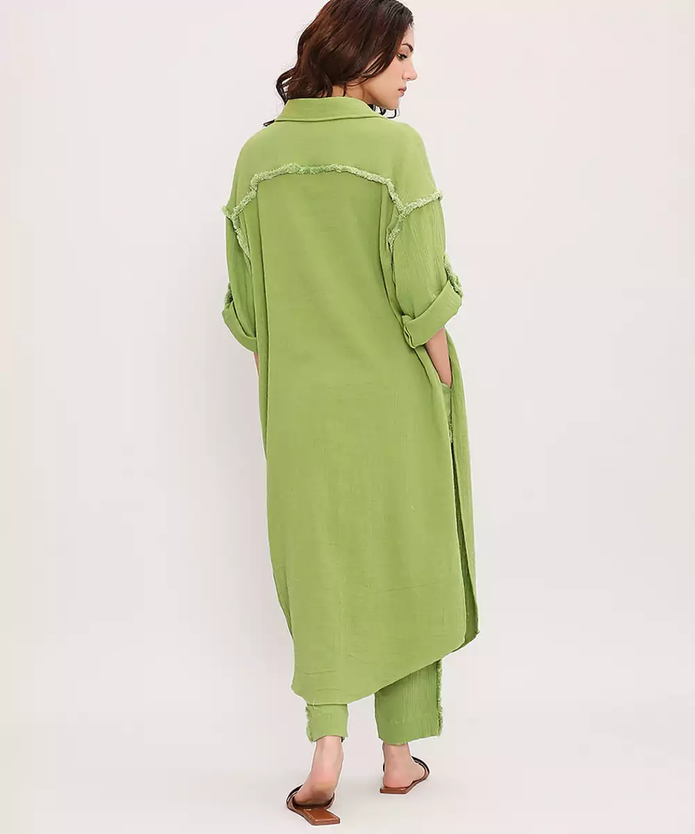 This Green Cotton Kurta Set Blends Comfort With Effortless Elegance. Crafted From Soft, Breathable Cotton, It Features A Gracefully Tailored Kurta Paired With Matching Bottoms For A Coordinated Look. Perfect For Casual Outings, Festive Gatherings, Or Everyday Wear, It Offers Timeless Charm, Versatility, And Polished, Relaxed Style.