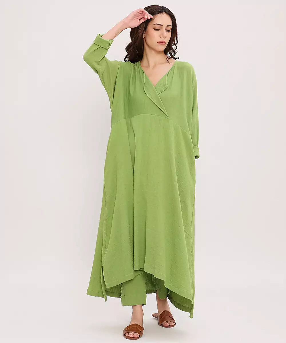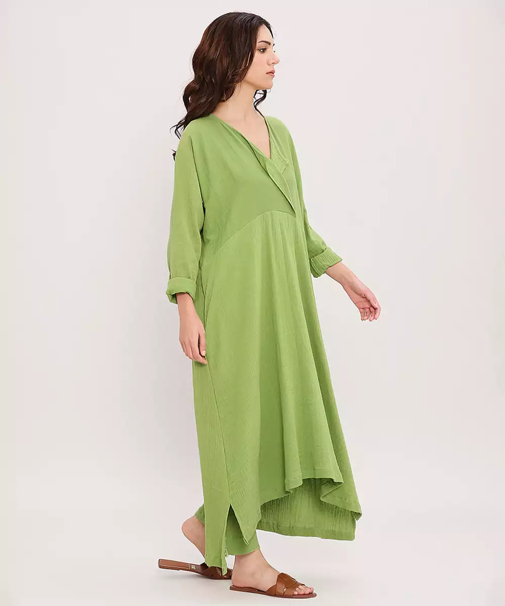 This Green Cotton Kurta Combines Effortless Comfort With Timeless Elegance. Crafted From Soft, Breathable Cotton, It Ensures All Day Ease While Maintaining A Graceful Silhouette. Its Minimalist Design And Subtle Charm Make It Perfect For Casual Outings, Office Wear, Or Festive Occasions. A Versatile Wardrobe Staple For Refined, Everyday Style.