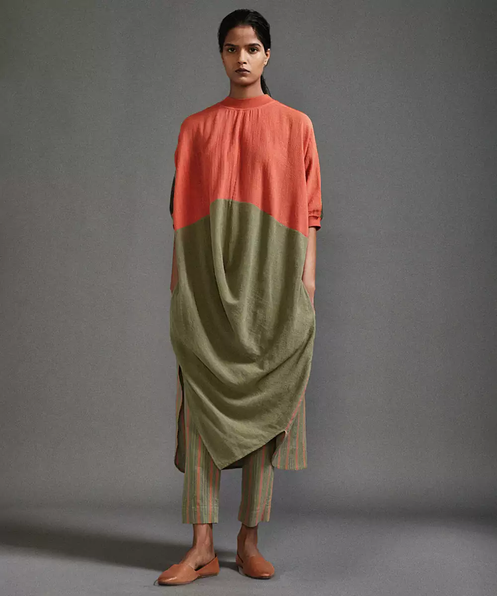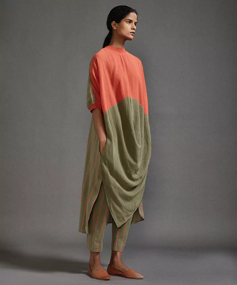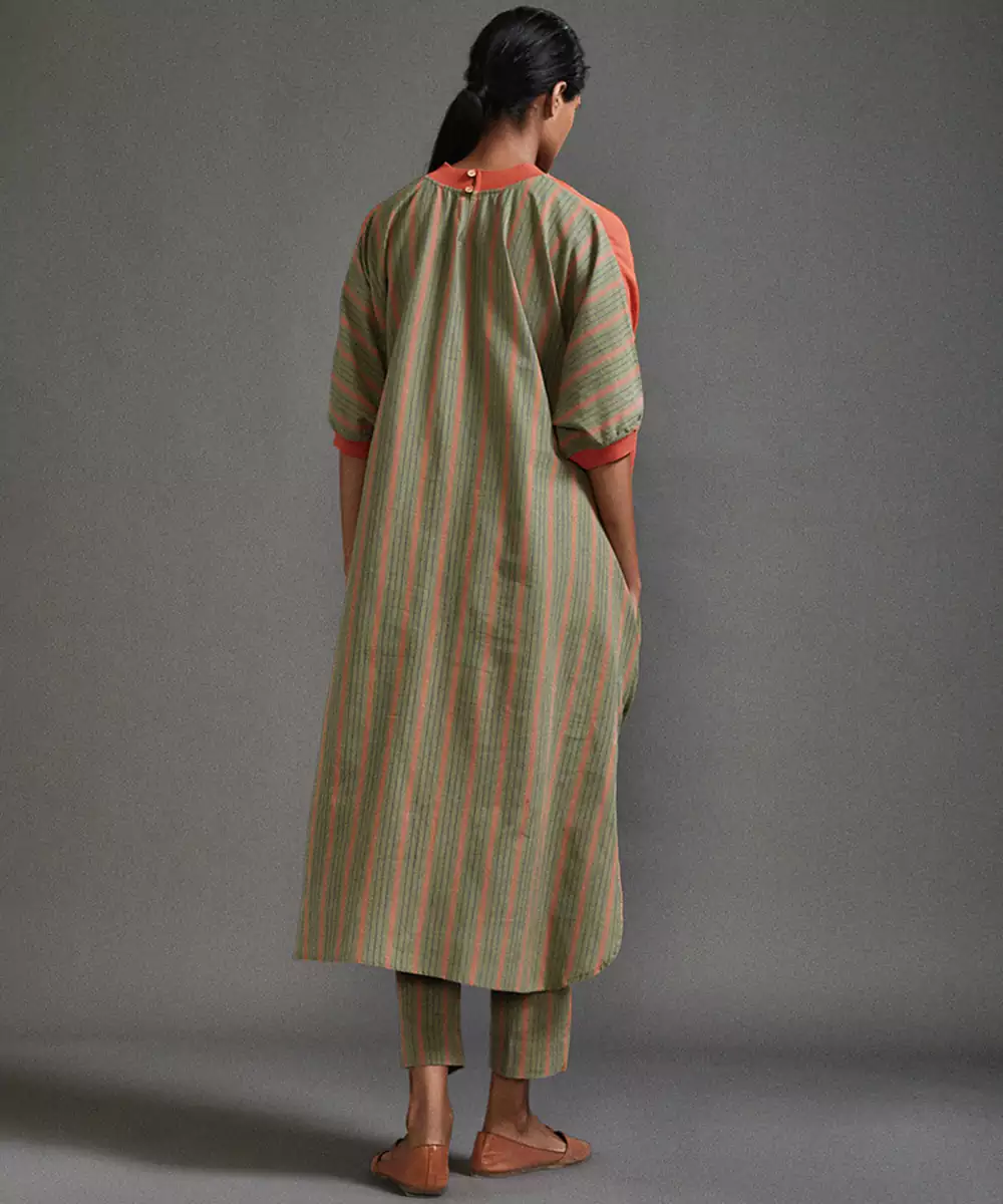 This Orange And Green Cotton Kurta Set Combines Vibrant Contrast With Breathable Comfort. Crafted From Soft Cotton, It Features A Gracefully Tailored Kurta Paired With Coordinated Bottoms For A Harmonious Look. Ideal For Casual Outings, Festive Occasions, Or Daytime Wear, It Offers Effortless Style, Freshness, And Timeless Ethnic Charm.