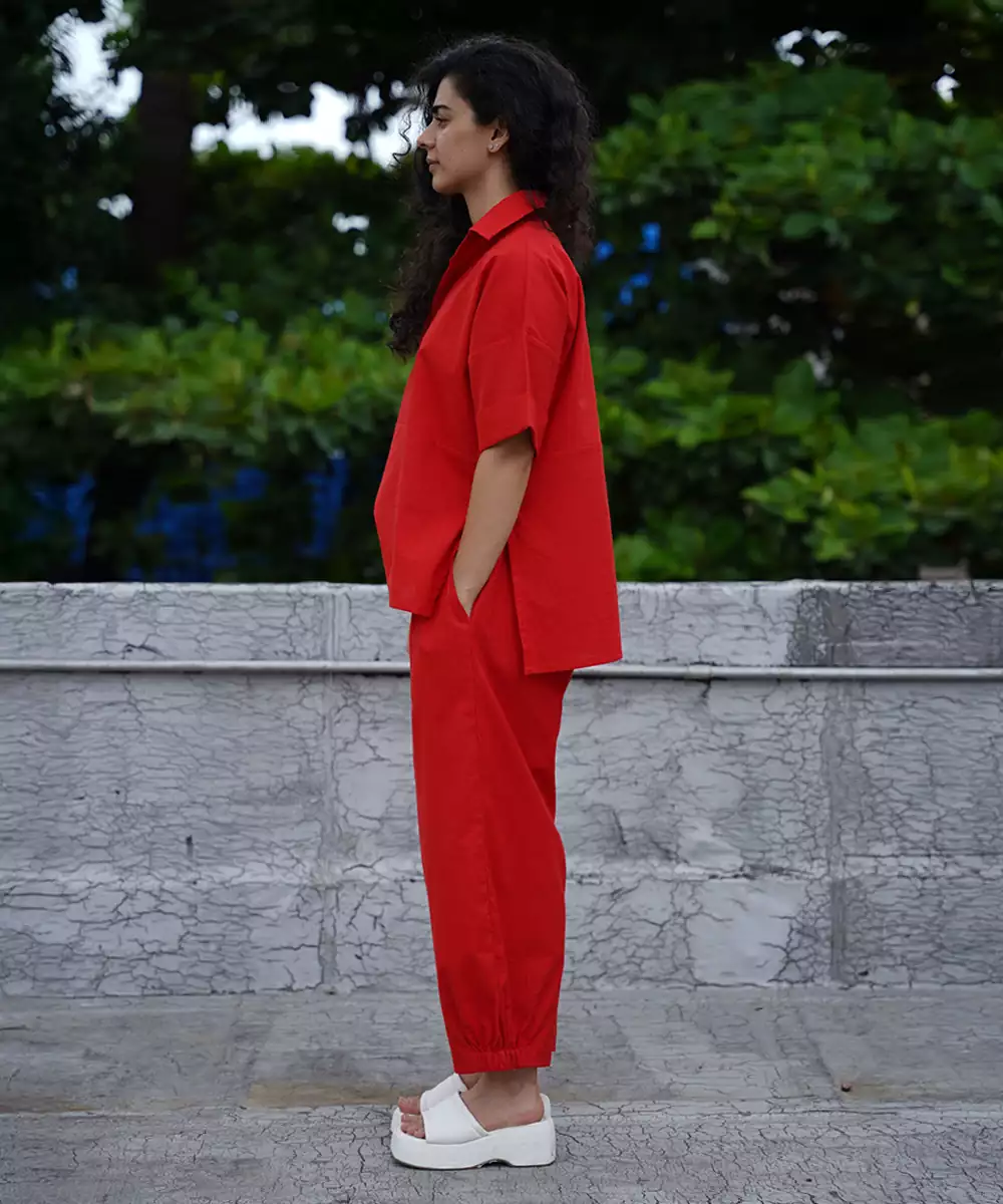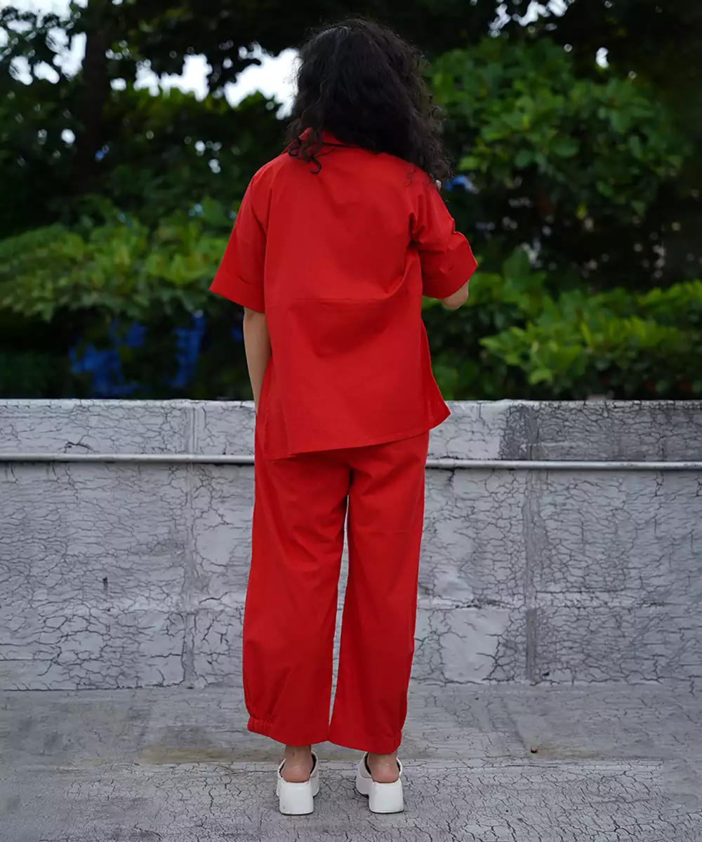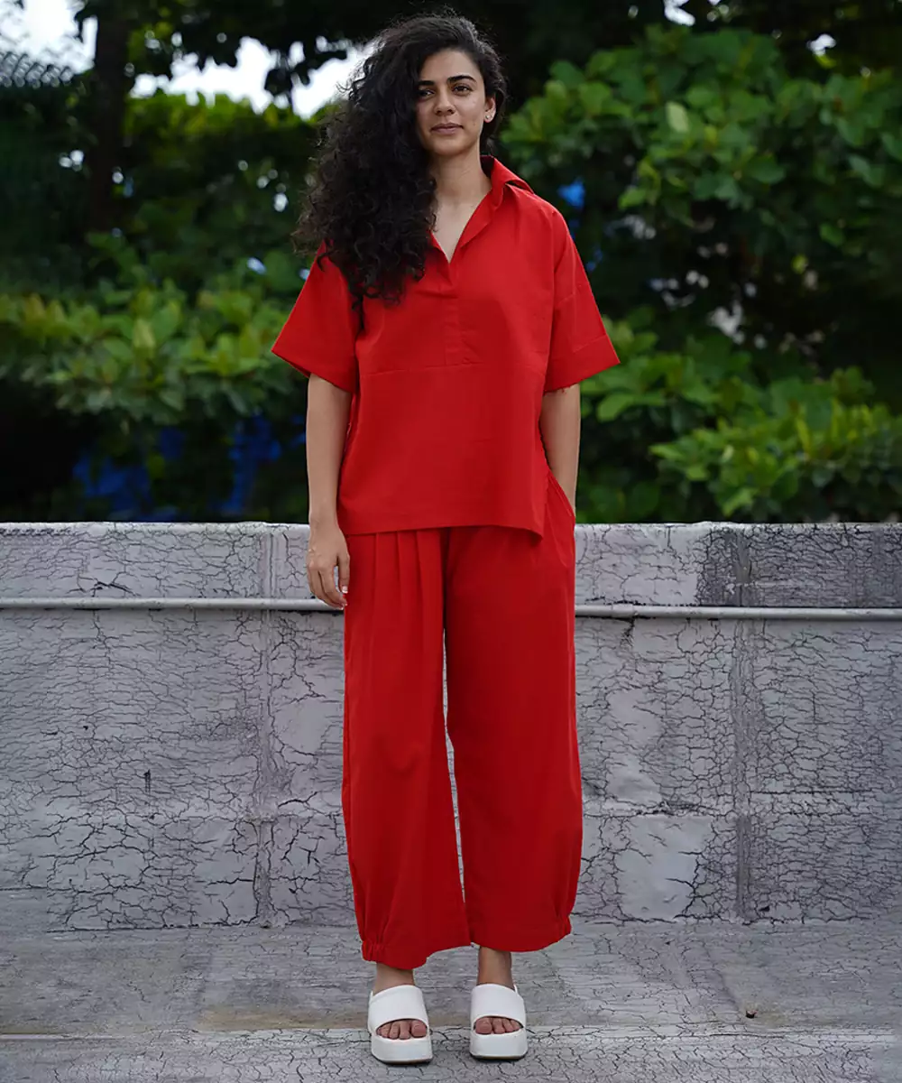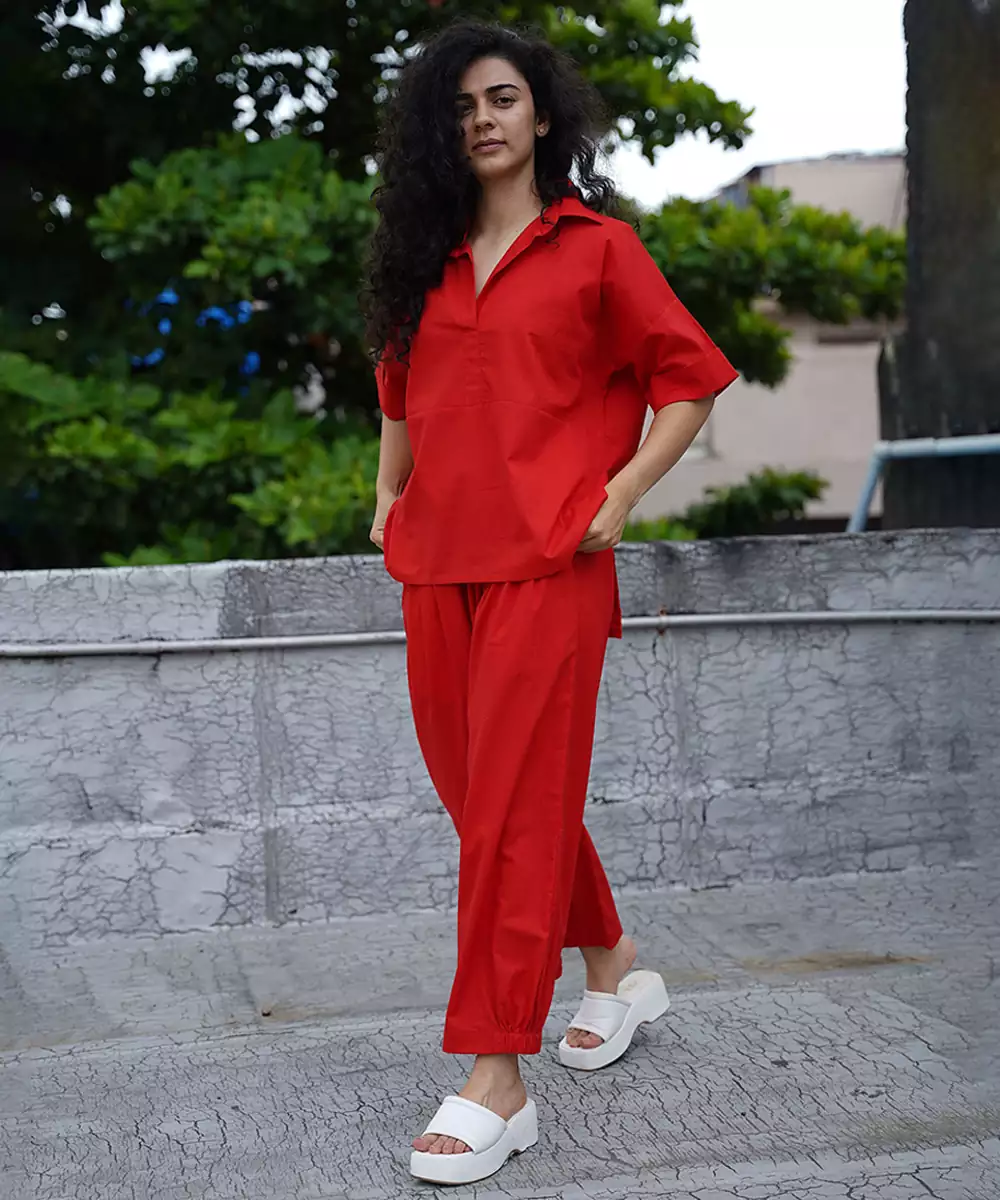 This Red Cotton Co Ord Set Blends Vibrant Color With Effortless Comfort. Crafted From Soft, Breathable Cotton, It Features A Coordinated Silhouette That Ensures Ease Of Wear And A Flattering Fit. Perfect For Casual Outings, Festive Gatherings, Or Everyday Styling, It Offers A Bold Yet Refined Look With Timeless Appeal.