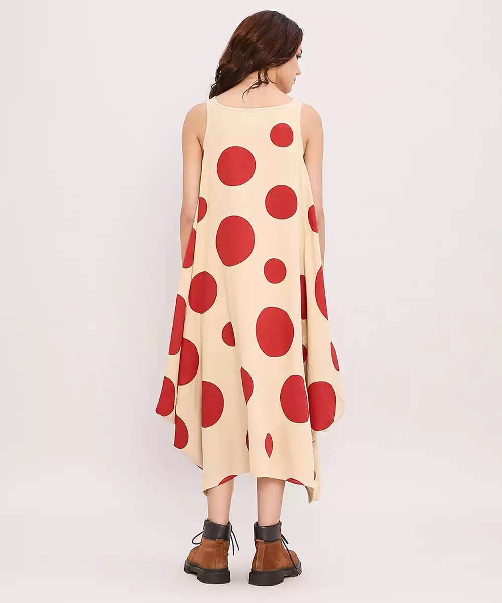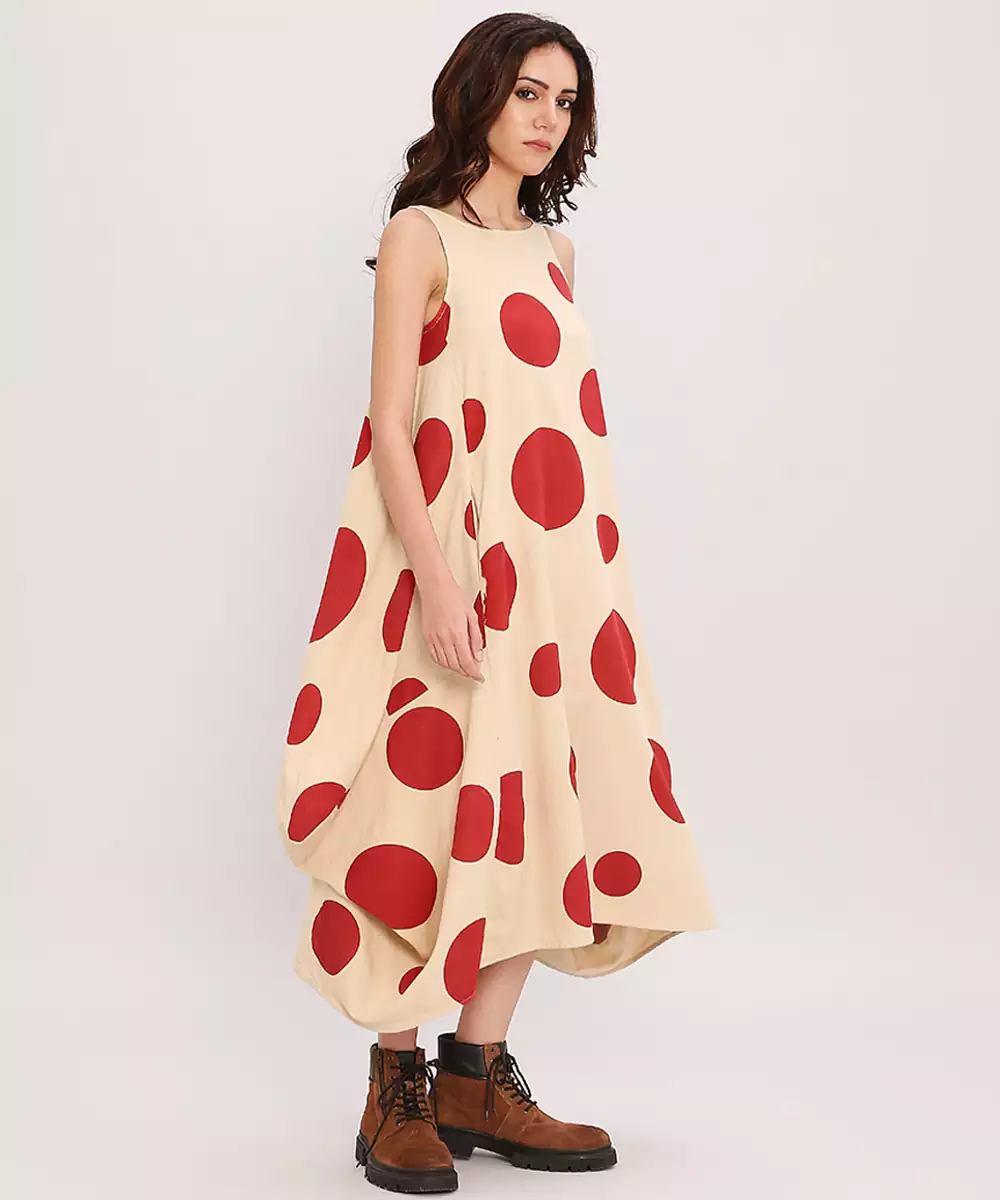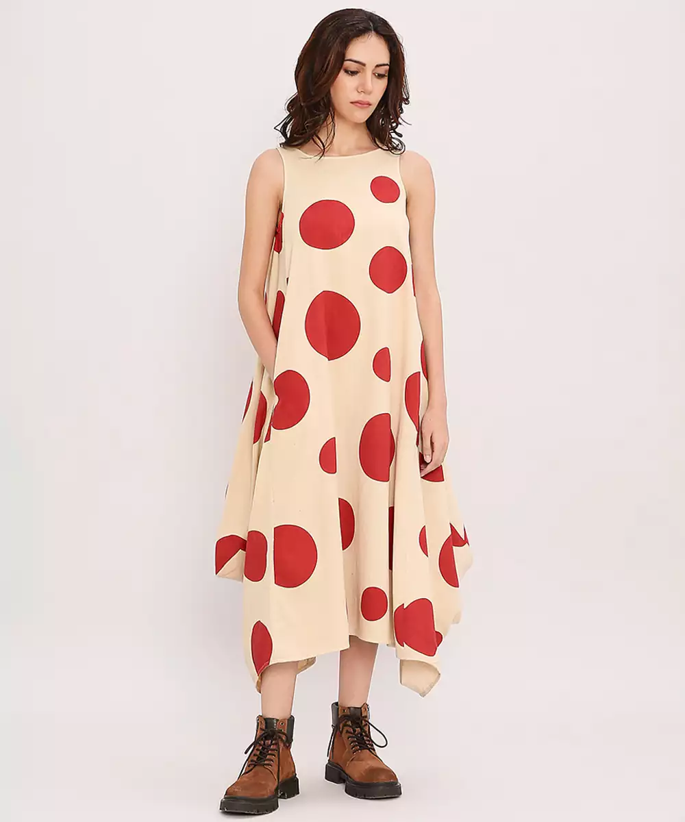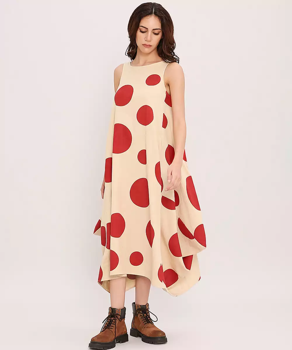 This Red Printed Cotton Polka Dress Brings Together Vibrant Charm And Everyday Comfort. Crafted From Soft, Breathable Cotton, It Features Lively Prints That Add A Cheerful Touch. Its Easy, Flattering Silhouette Makes It Perfect For Casual Outings, Daytime Events, Or Relaxed Gatherings, Offering Effortless Style With A Fresh, Graceful Appeal.
