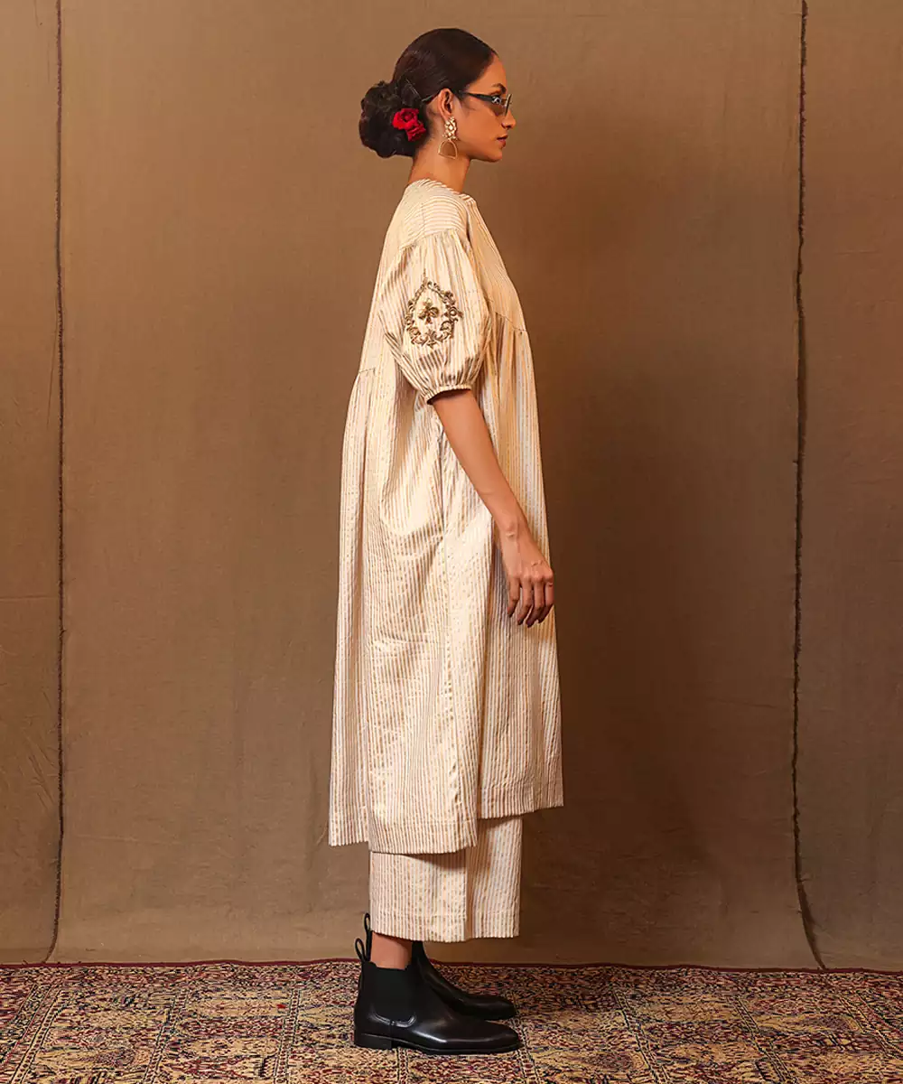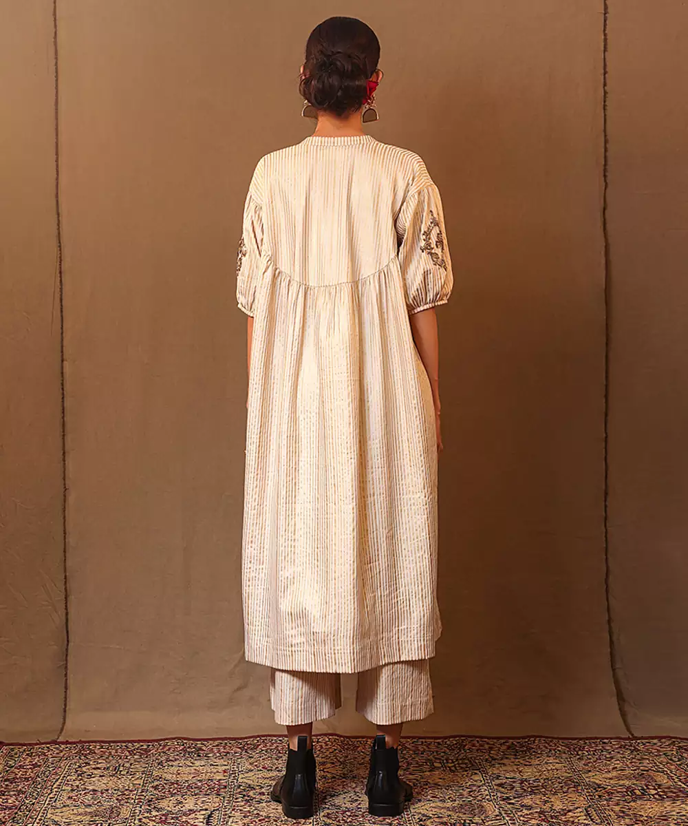 White Printed Cotton Long Kurta