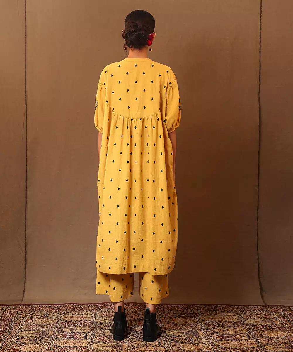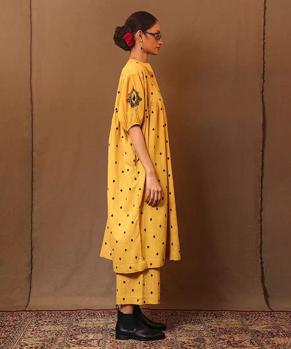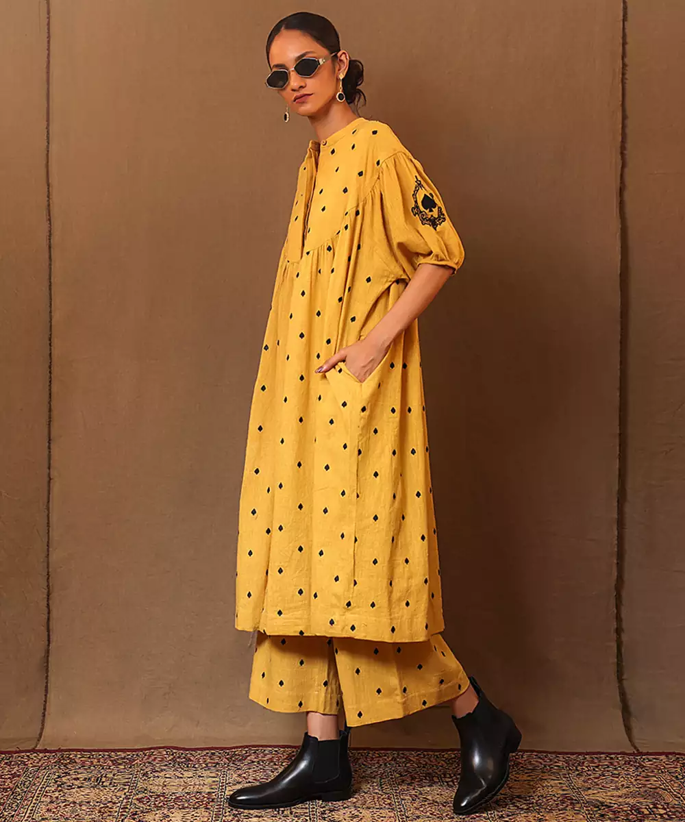 This Yellow Printed Cotton Kurta Set Offers A Fresh, Elegant Look With Its Soft, Breathable Fabric And Refined All Over Prints. Paired With Comfortable Bottoms, It Delivers Both Style And Ease For Daily Wear Or Semi Traditional Occasions. Its Minimal, Versatile Design Makes It Perfect For Work, Casual Outings, Or Festive Gatherings.