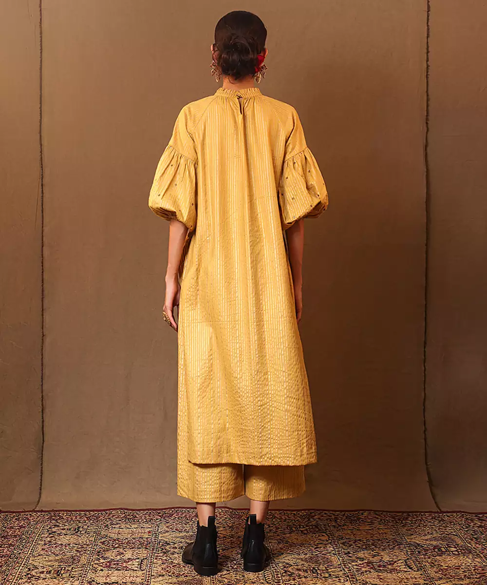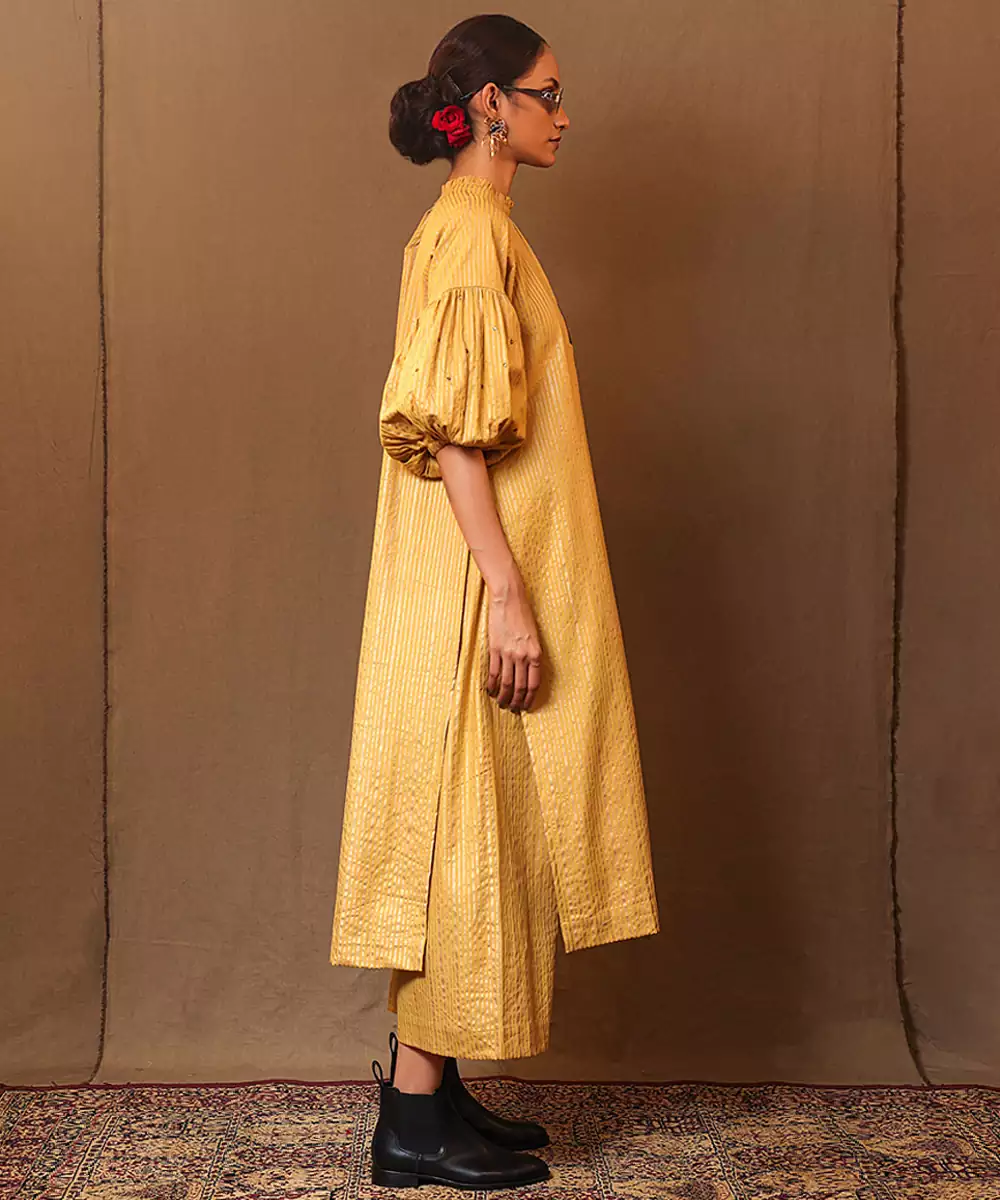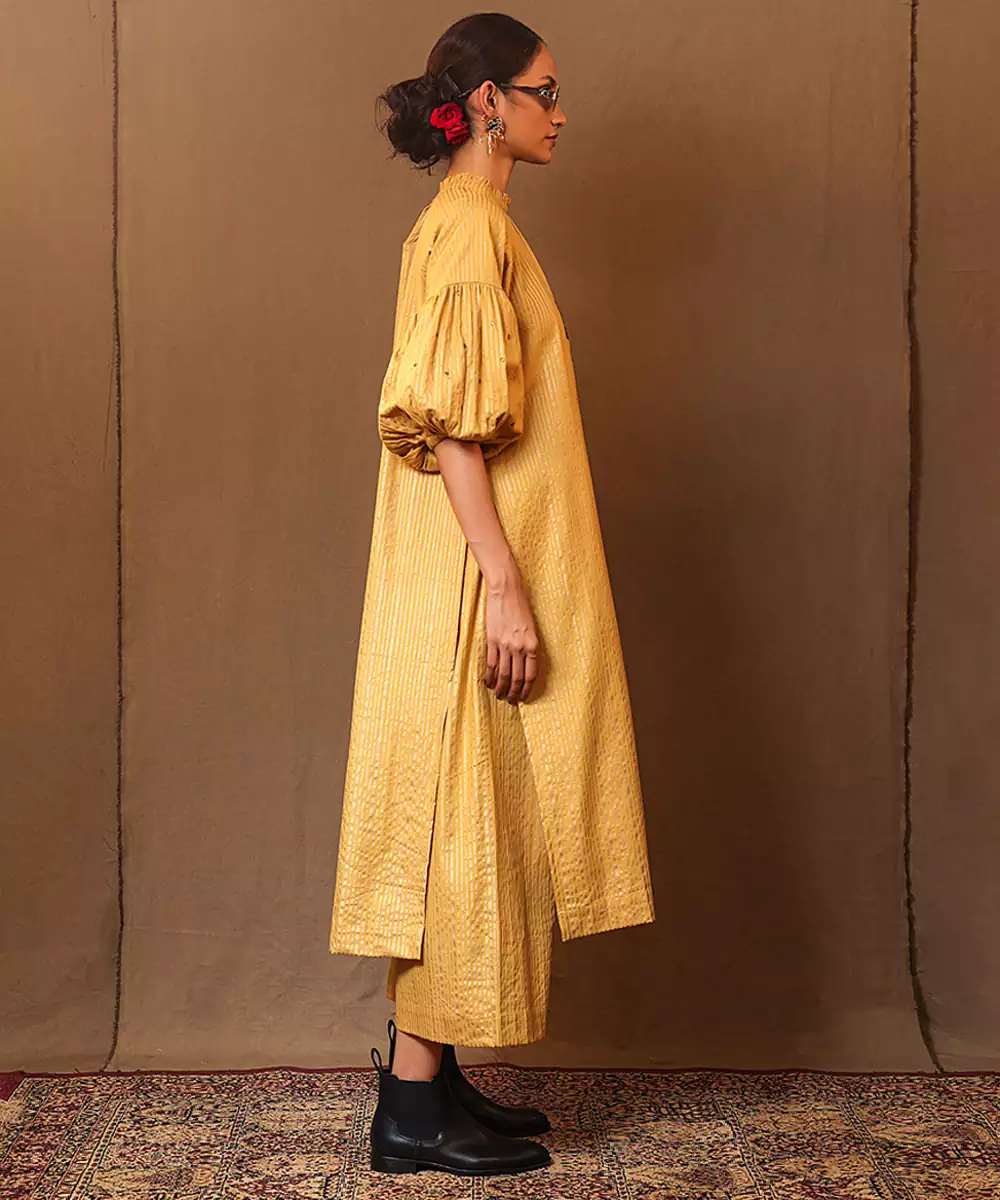 This Yellow Printed Cotton Kurta Set Offers A Fresh, Elegant Look With Its Soft, Breathable Fabric And Refined All Over Prints. Paired With Comfortable Bottoms, It Delivers Both Style And Ease For Daily Wear Or Semi Traditional Occasions. Its Minimal, Versatile Design Makes It Perfect For Work, Casual Outings, Or Festive Gatherings.