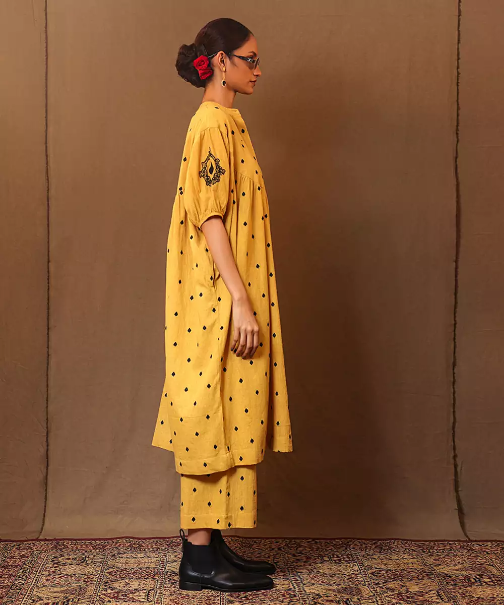 This Yellow Printed Cotton Long Kurta Combines Comfort With Effortless Elegance. Designed With Soft, Breathable Fabric, It Features Subtle Prints That Add A Refined Touch To Your Everyday Or Festive Wardrobe. Perfect For Casual Outings Or Semi Traditional Events, This Kurta Ensures A Relaxed Fit And Timeless Style For Any Occasion.