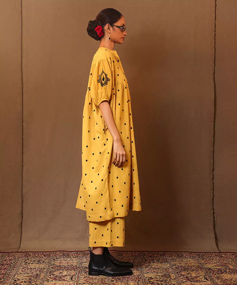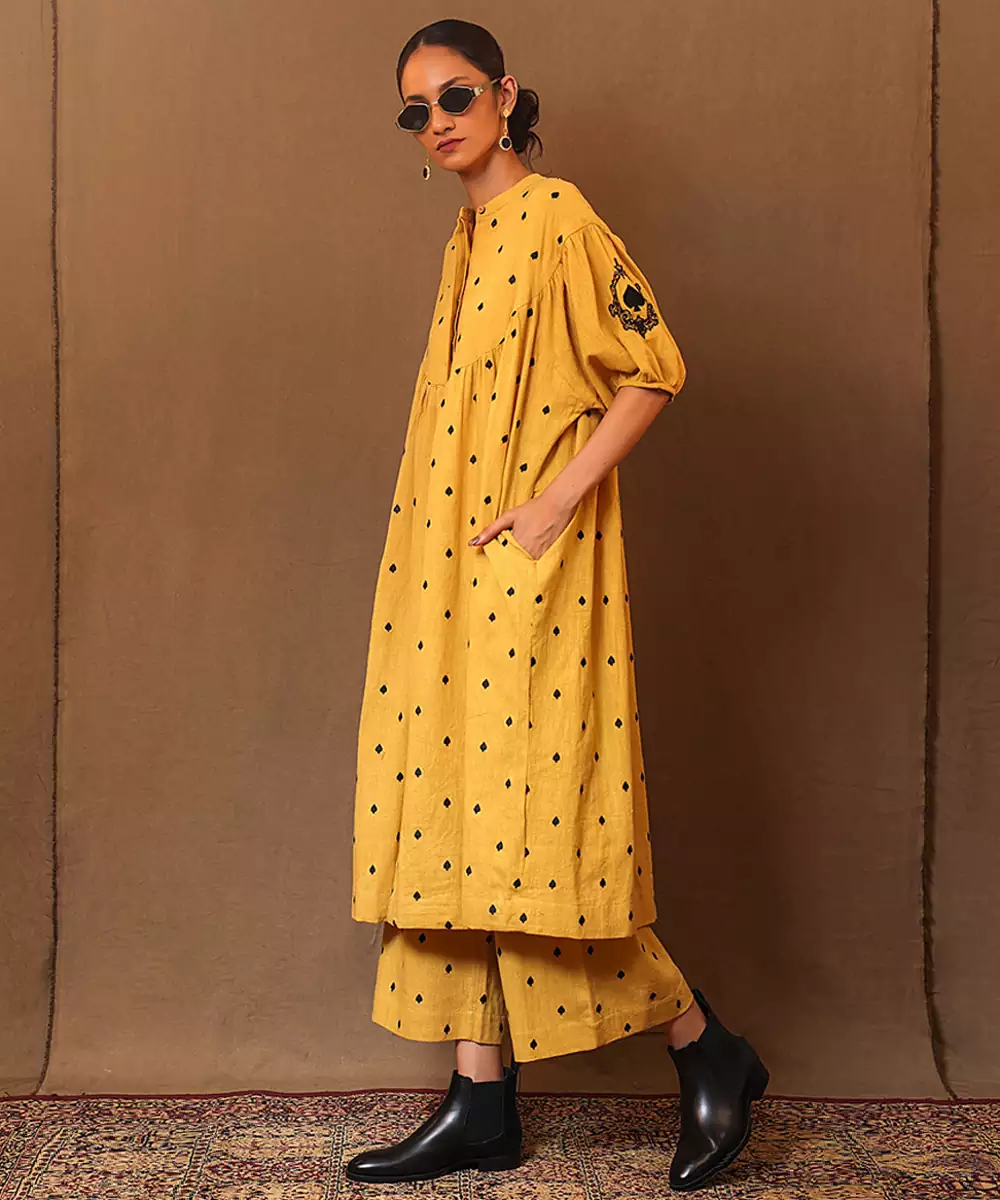 This Yellow Printed Cotton Long Kurta Combines Comfort With Effortless Elegance. Designed With Soft, Breathable Fabric, It Features Subtle Prints That Add A Refined Touch To Your Everyday Or Festive Wardrobe. Perfect For Casual Outings Or Semi Traditional Events, This Kurta Ensures A Relaxed Fit And Timeless Style For Any Occasion.